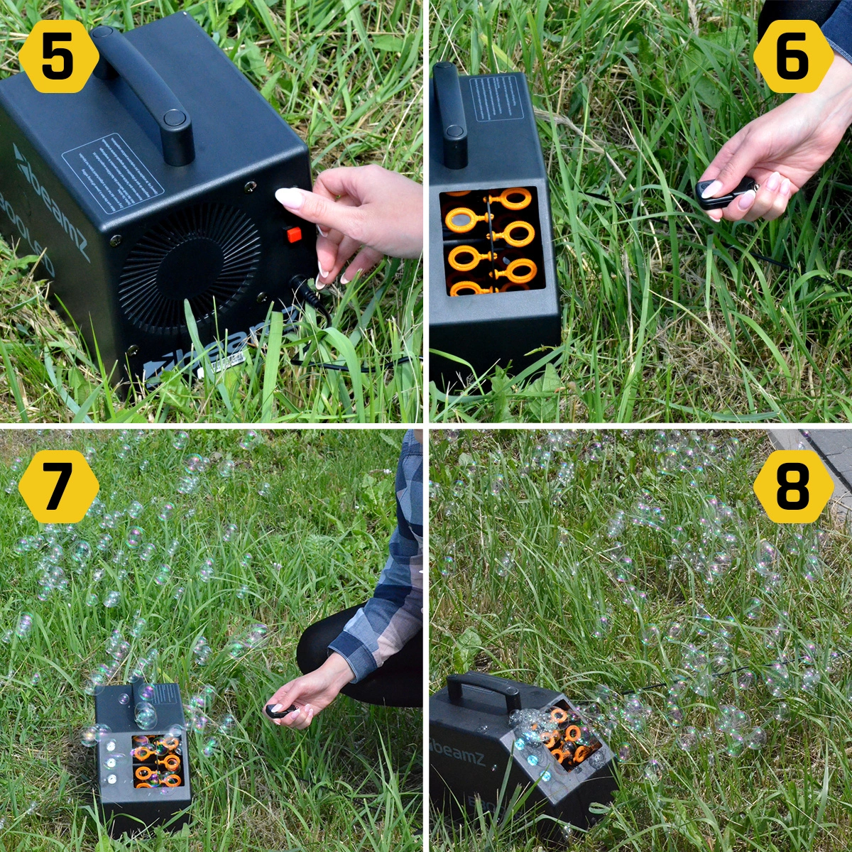 W zestawie z 5 litrami płynu do baniek, B300LED wytwarza mnóstwo bąbelków już od pierwszej chwili, zapewniając mnóstwo zabawy!
