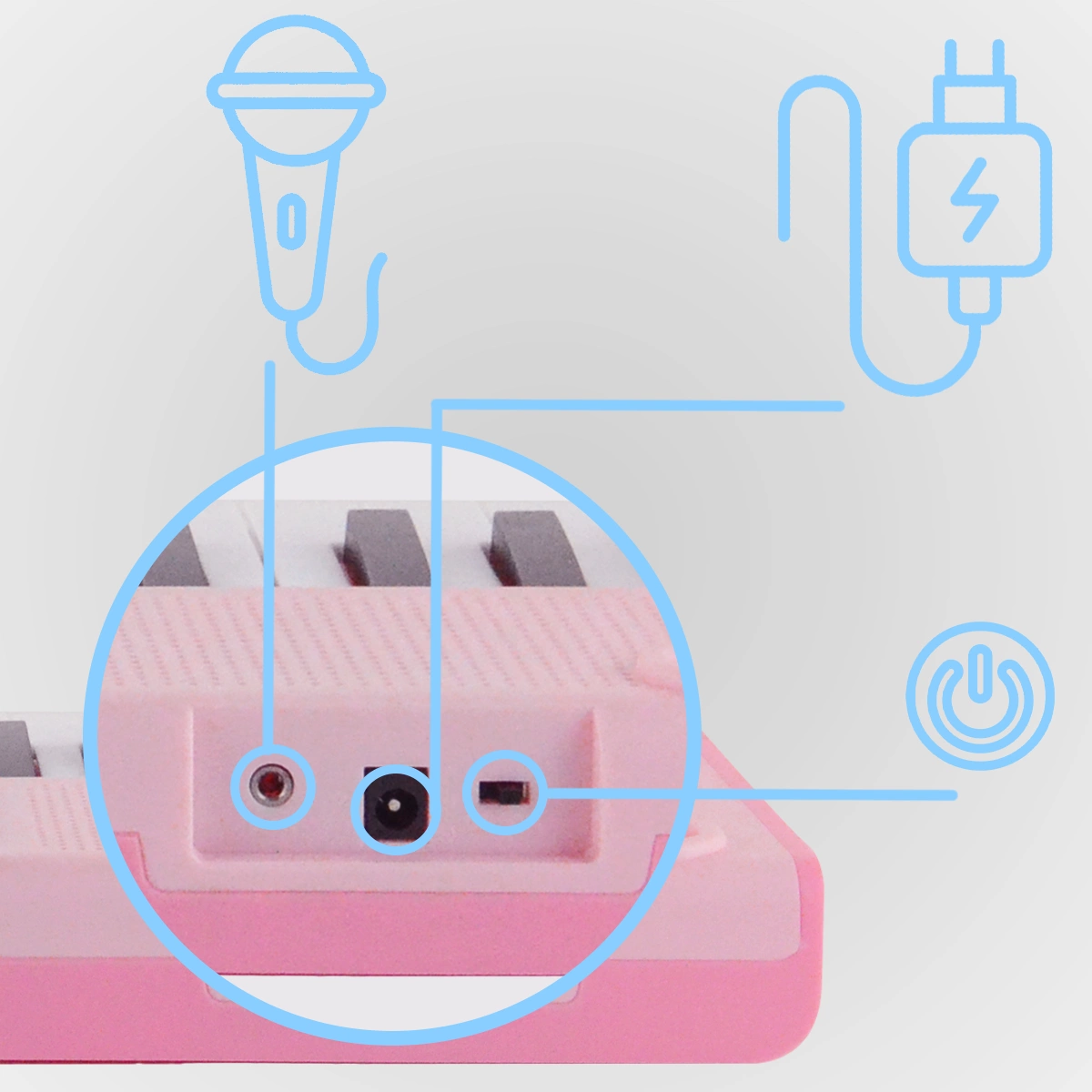 Keyboard edukacyjny BD-375 BDMusic to doskonały wybór dla rodziców, którzy chcą wspierać muzyczny rozwój swojego dziecka. Dzięki szerokiemu wachlarzowi funkcji, atrakcyjnemu designowi i dodatkowym akcesoriom, jak mikrofon na statywie, pulpit na nuty oraz naklejki na klawiaturę ten instrument zapewnia godziny kreatywnej zabawy i nauki od najmłodszych lat.