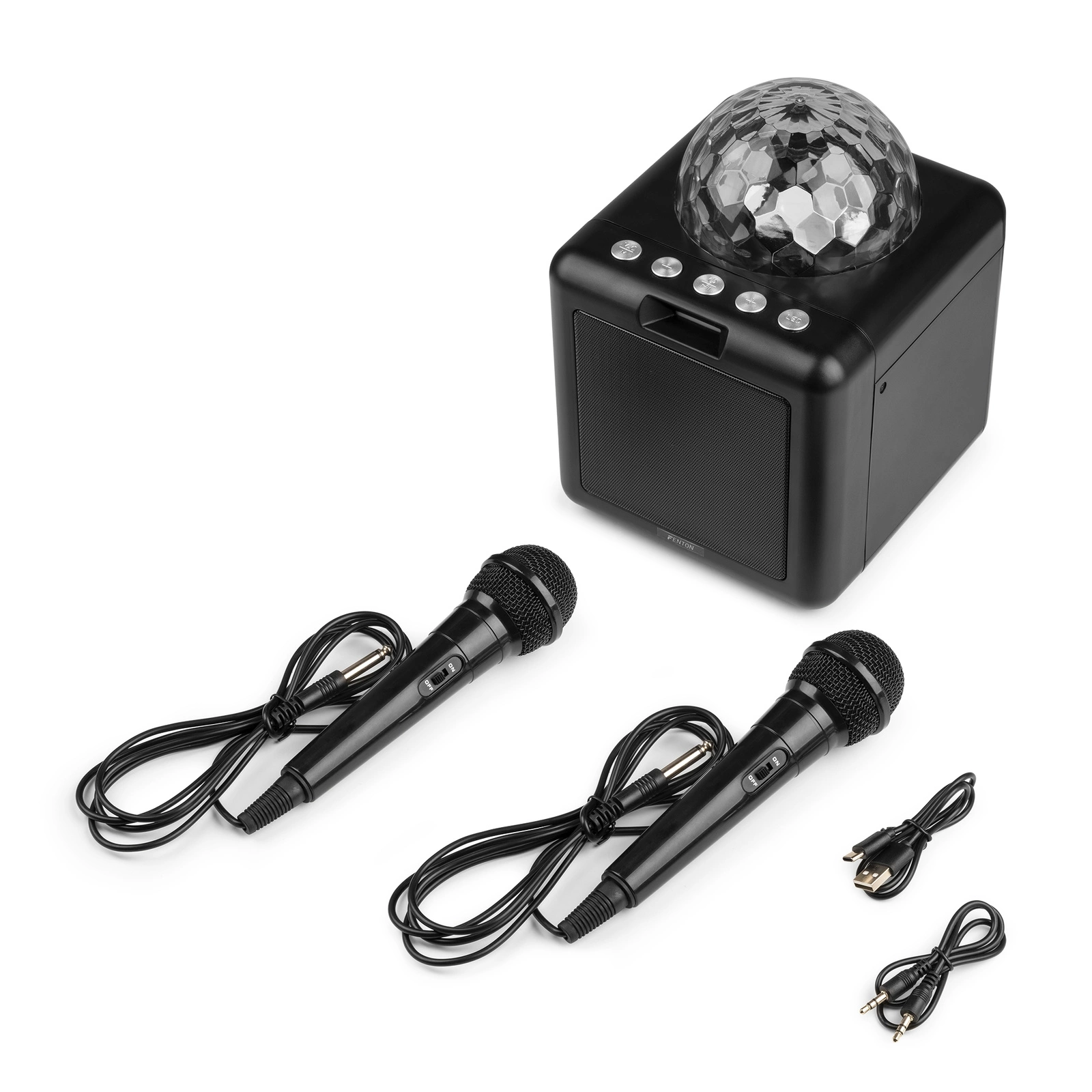 Karaoke z półkulą LED 15W głośnik bluetooth 2 mikrofony Fenton czarny