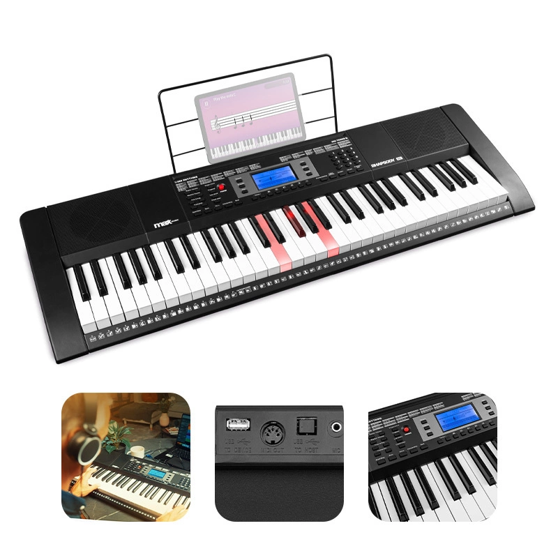 Klawisze Rhapsody61L świecą się, co czyni naukę gry na keyboardzie dziecinnie prostą. Nauka staje się jeszcze przyjemniejsza dzięki możliwości umieszczenia tabletu z tutorialami z YouTube lub nutami na specjalnym uchwycie, co pozwala przyspieszyć postępy. Możesz także grać razem z jedną z 40 wbudowanych piosenek demo. Co więcej, masz możliwość nagrywania i odtwarzania swoich muzycznych produkcji, aby podzielić się swoimi postępami z przyjaciółmi, rodziną lub innymi osobami. Chcesz poćwiczyć w spokoju? Podłącz słuchawki do Rhapsody61L i odizoluj się od otoczenia.