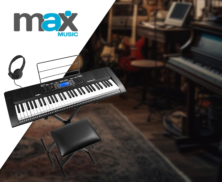 Czy dopiero zaczynasz swoją przygodę z pianinem, czy chcesz rozwijać swoje umiejętności? Zestaw MAX Rhapsody61M jest idealnym rozwiązaniem! Obejmuje on wszechstronną klawiaturę Rhapsody61M, a także wygodne składane siedzisko, regulowany statyw i słuchawki, dzięki czemu możesz od razu zacząć grać.