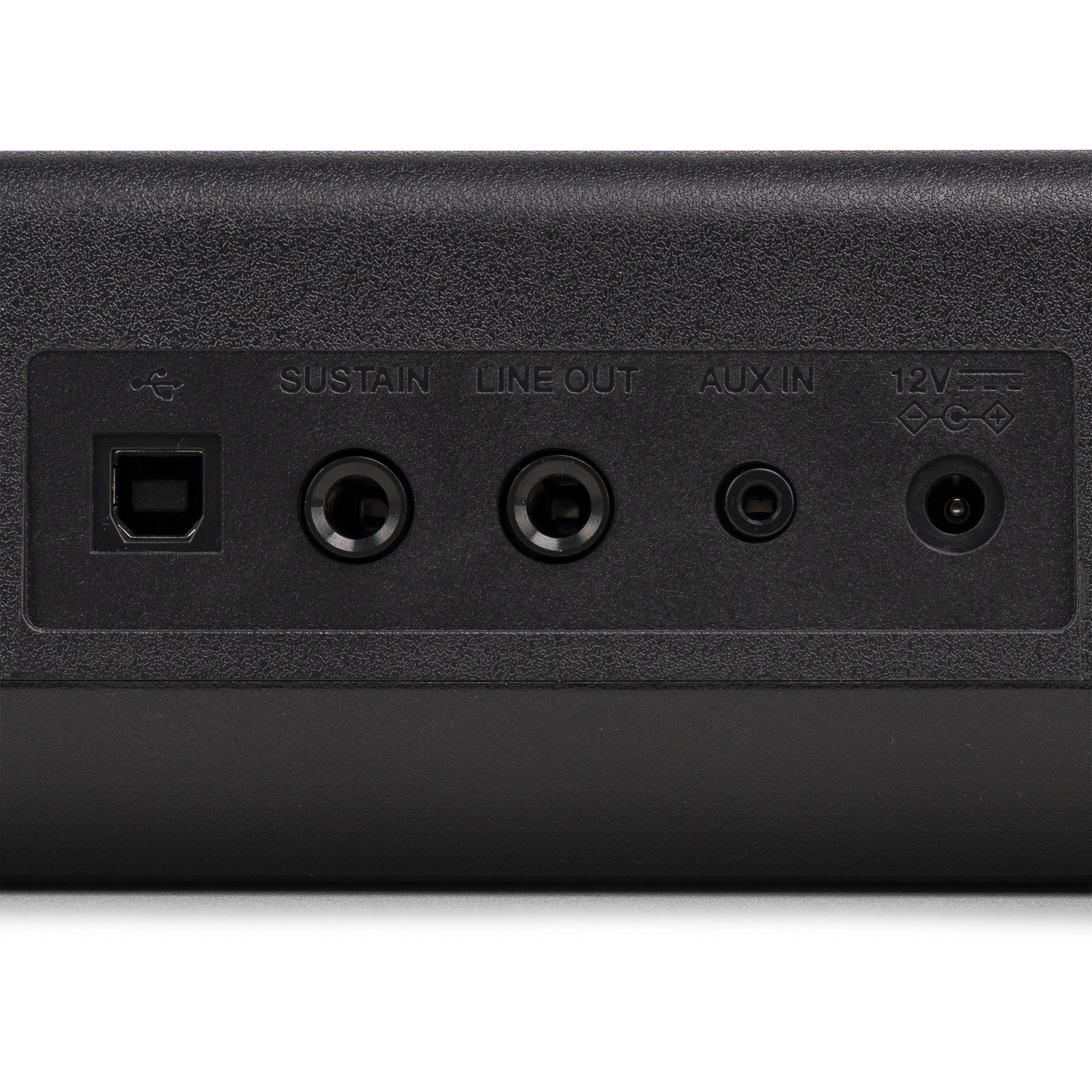 Wbudowane wysokiej jakości głośniki stereo zapewniają pełne i czyste brzmienie. Jeśli wolisz ćwiczyć w ciszy, wystarczy podłączyć słuchawki i grać bez zakłócania spokoju innych. A jeśli chcesz odtwarzać swoją muzykę na dużym systemie nagłośnienia, możesz skorzystać z wyjścia liniowego 6,3 mm Jack lub wejścia AUX 3,5 mm.