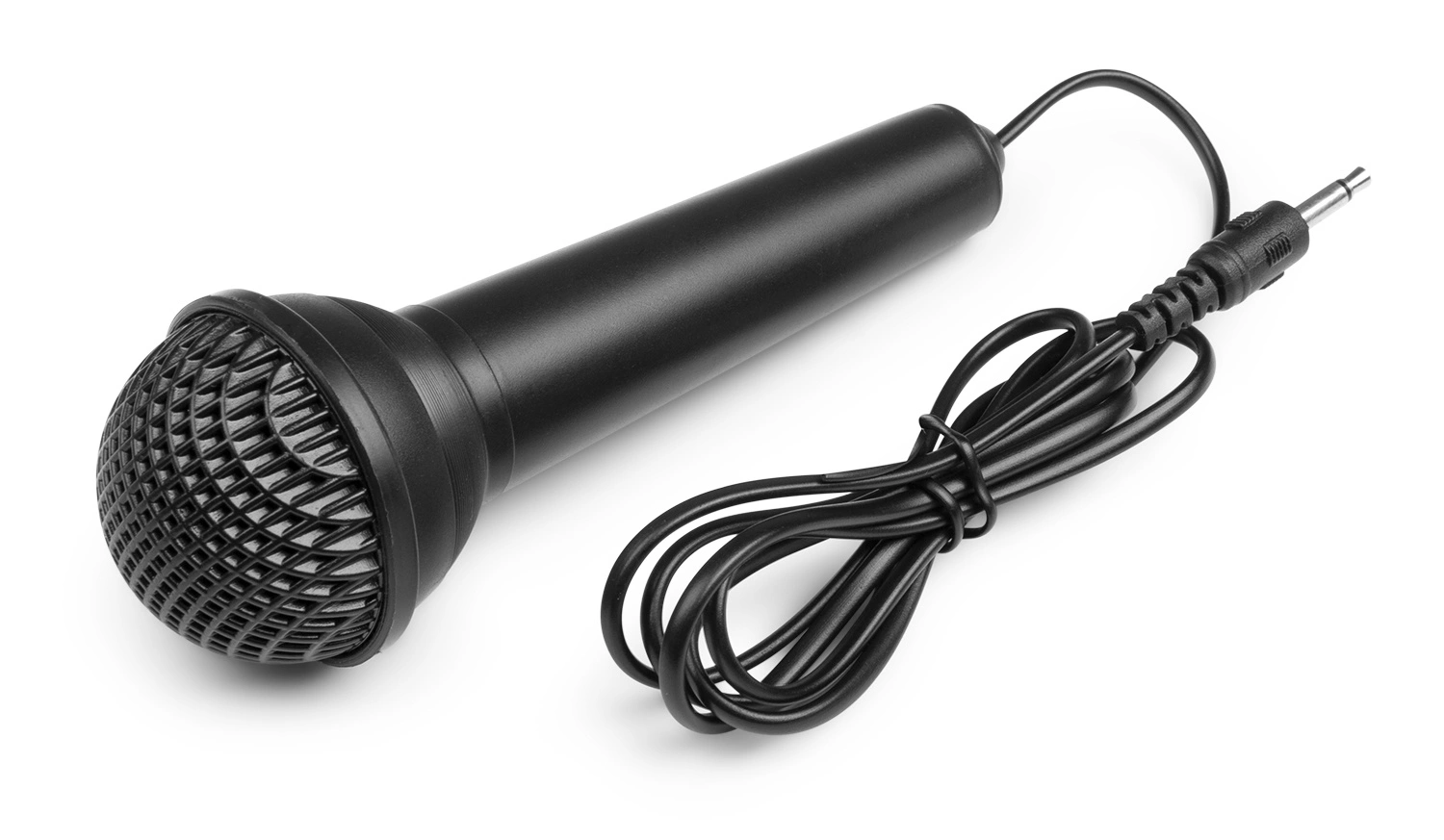 - Przewodowy mikrofon, który idealnie sprawdzi się do ćwiczeń wokalnych lub prowadzenia karaoke,