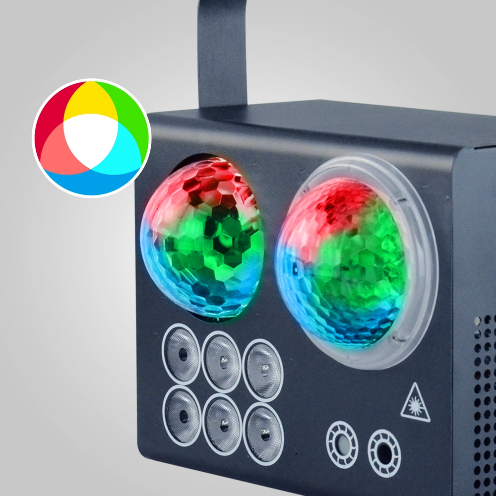 - Wszechstronność: Reflektor oferuje kropki LED, efekt fali wodnej, czerwony i zielony laser oraz efekt mycia (wash) LED, co pozwala na tworzenie różnorodnych efektów świetlnych.
