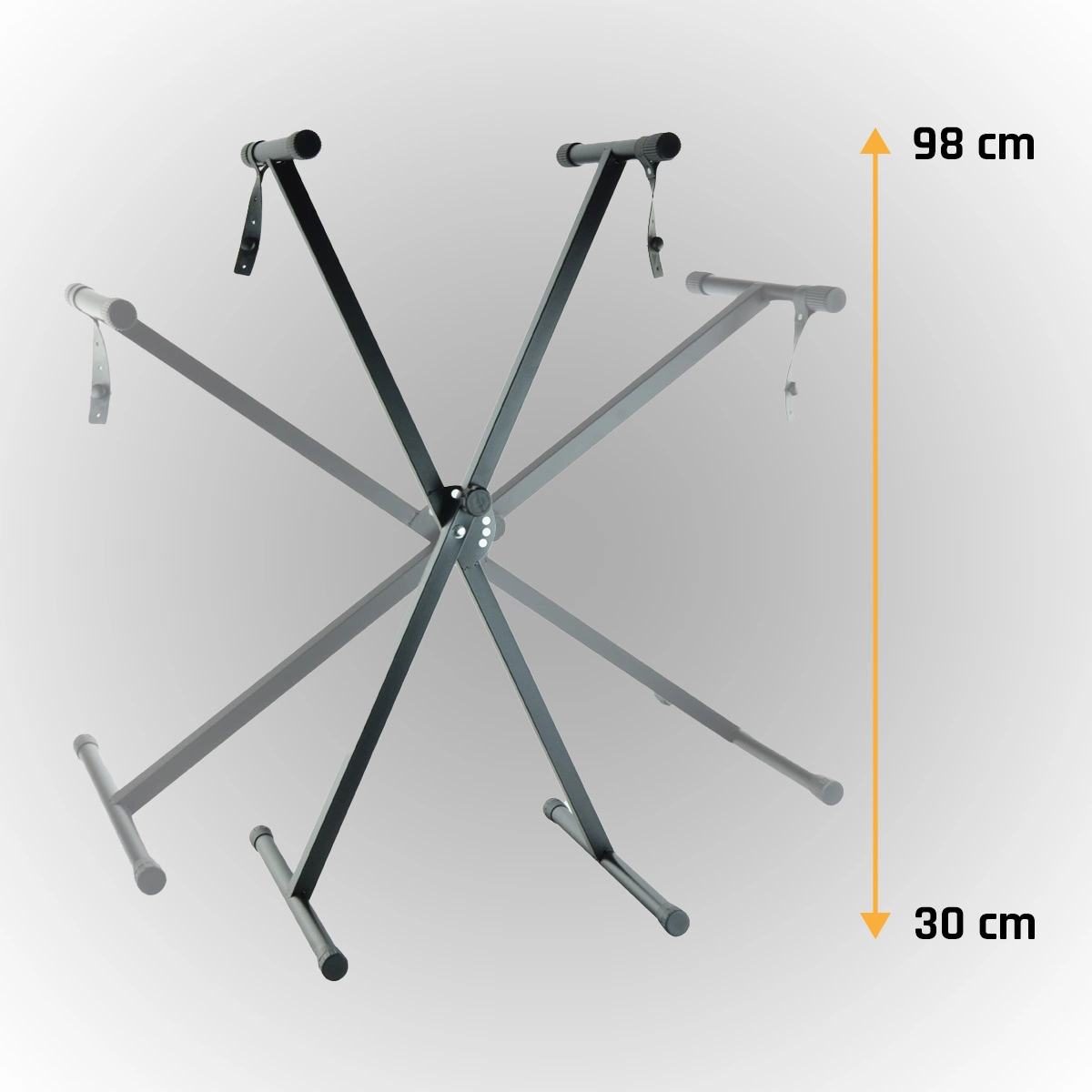 - Stabilna konstrukcja: Krzyżowy kształt statywu zapewnia równomierne rozłożenie ciężaru, dzięki czemu keyboard lub inne urządzenie stoi stabilnie podczas gry.