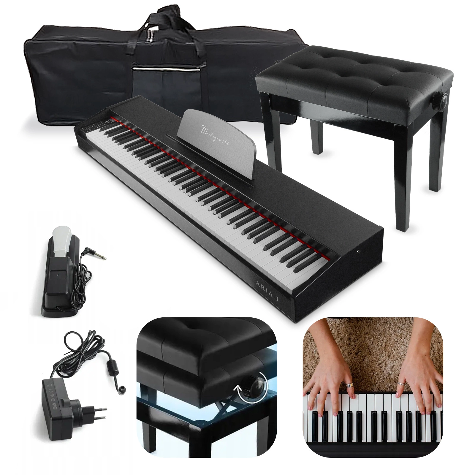 Zestaw premium: Pianino cyfrowe 88 ważonych klawiszy Aria I Mielczewski+ ławka pokrowiec