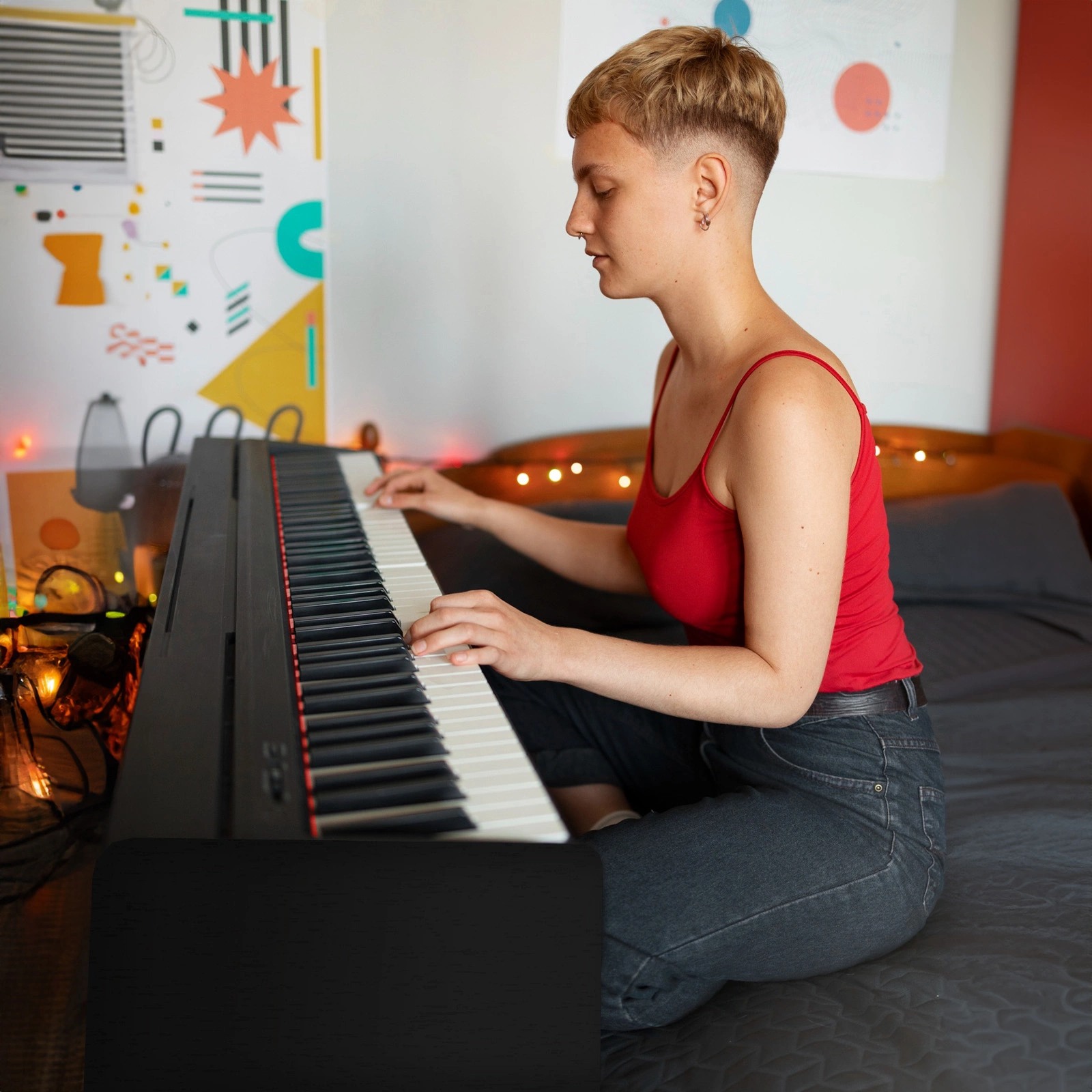 - 88 klawiszy o standardowej wadze – zapewniające naturalne odczucie gry.