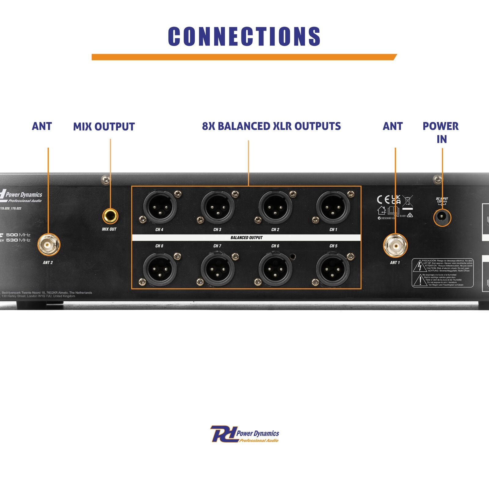 Kompletny system bezprzewodowy z 8 mikrofonami UHF – Power Dynamics PD528
