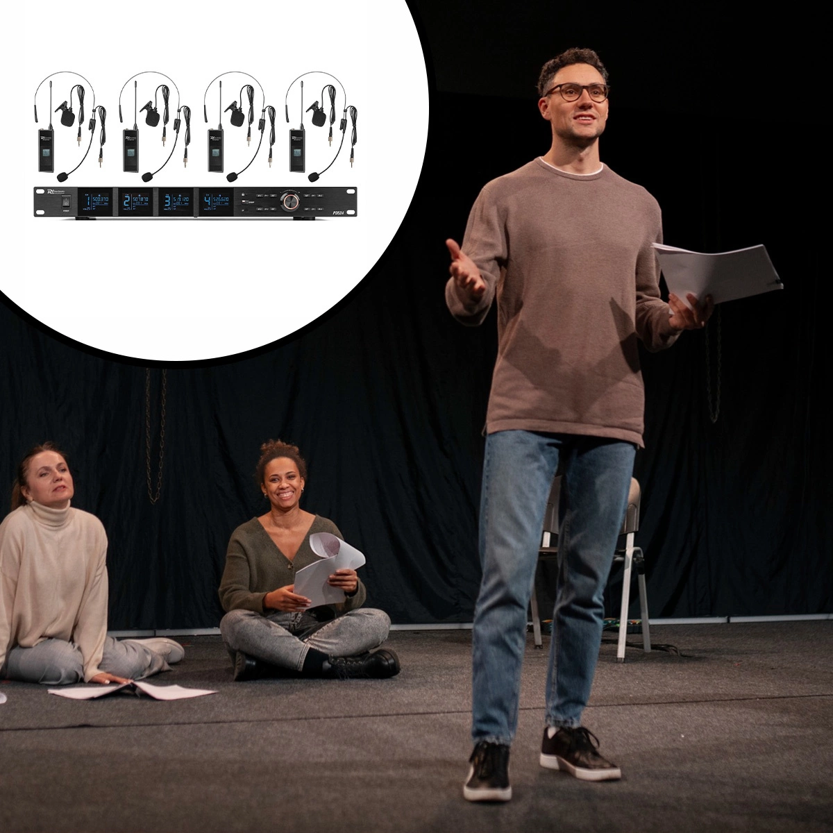 - 4 mikrofony typu bodypack z dynamicznym wyświetlaczem LCD i funkcją wyciszenia