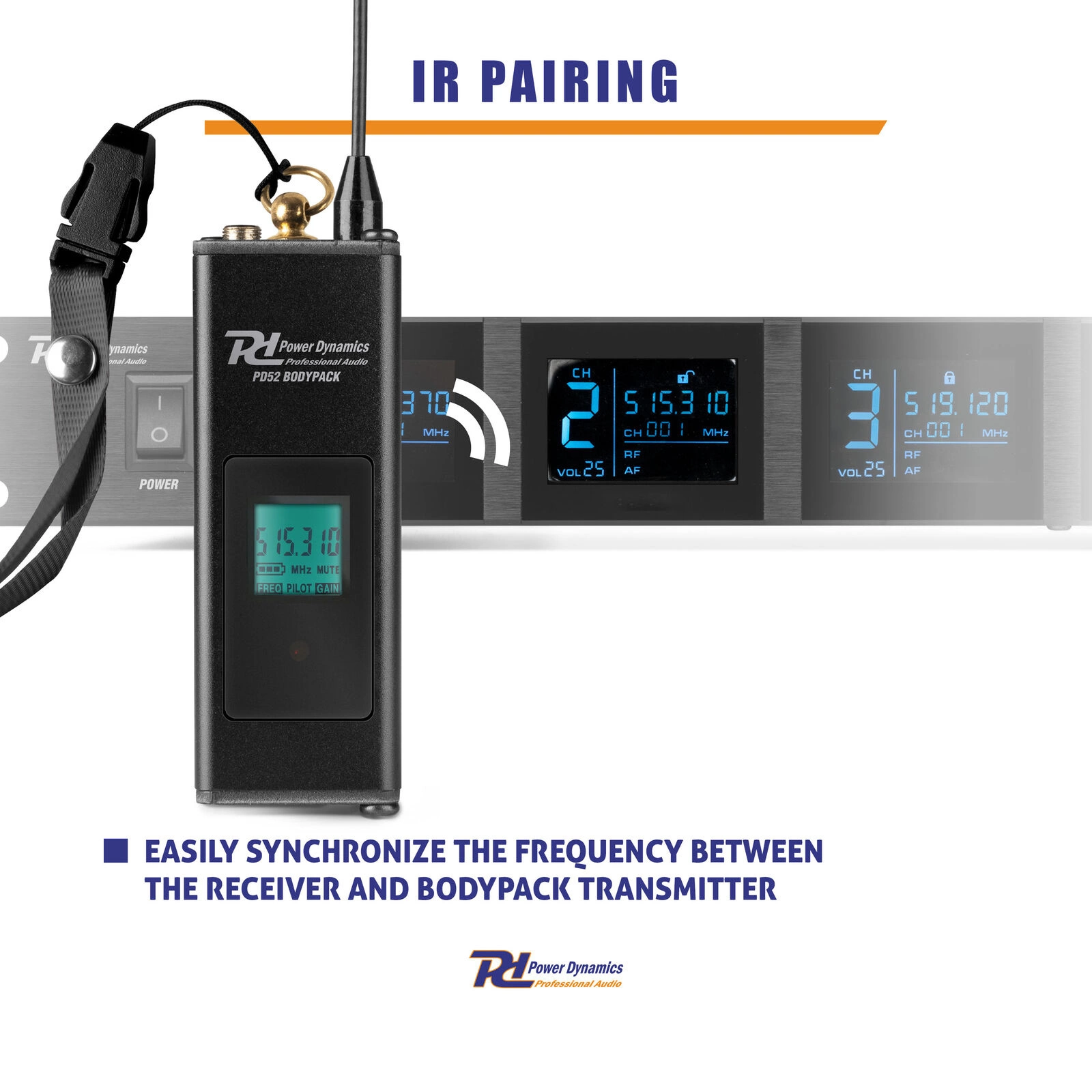 System mikrofonów Power Dynamics PD524B został zaprojektowany z myślą o prostocie i wygodzie użytkowania. Dzięki funkcji synchronizacji przez podczerwień, ustawienie mikrofonów jest szybkie i intuicyjne. Wystarczy zbliżyć mikrofon do odbiornika, aby automatycznie ustawić odpowiednią częstotliwość, co eliminuje potrzebę ręcznej konfiguracji. Ta funkcjonalność sprawia, że system jest idealny do dynamicznych sytuacji, gdzie czas ma kluczowe znaczenie, jak wydarzenia na żywo czy konferencje.