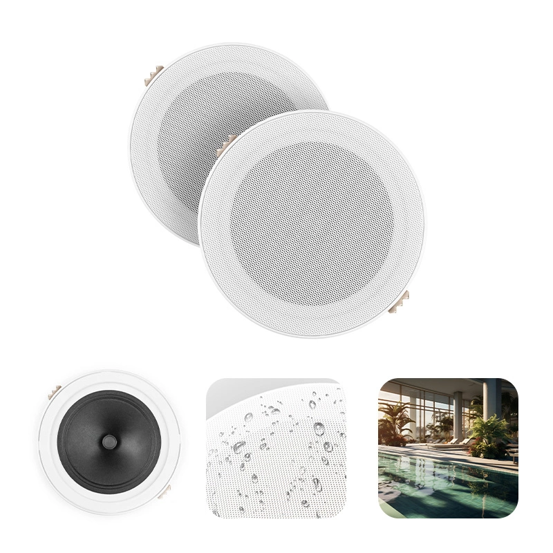 Jednym z kluczowych atutów głośników MSLP50 jest ich niskoprofilowa konstrukcja, która po zamontowaniu niemal nie wystaje, oferując eleganckie i dyskretne wykończenie. Dzięki systemowi montażu „Easy-Fit”, instalacja jest szybka i prosta — wystarczy wcisnąć głośniki w sufit lub ścianę. To czyni je idealnym wyborem do łazienek, tarasów, basenów oraz łodzi, gdzie chcesz cieszyć się muzyką w wyjątkowy sposób.