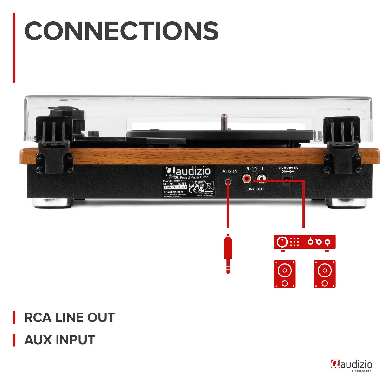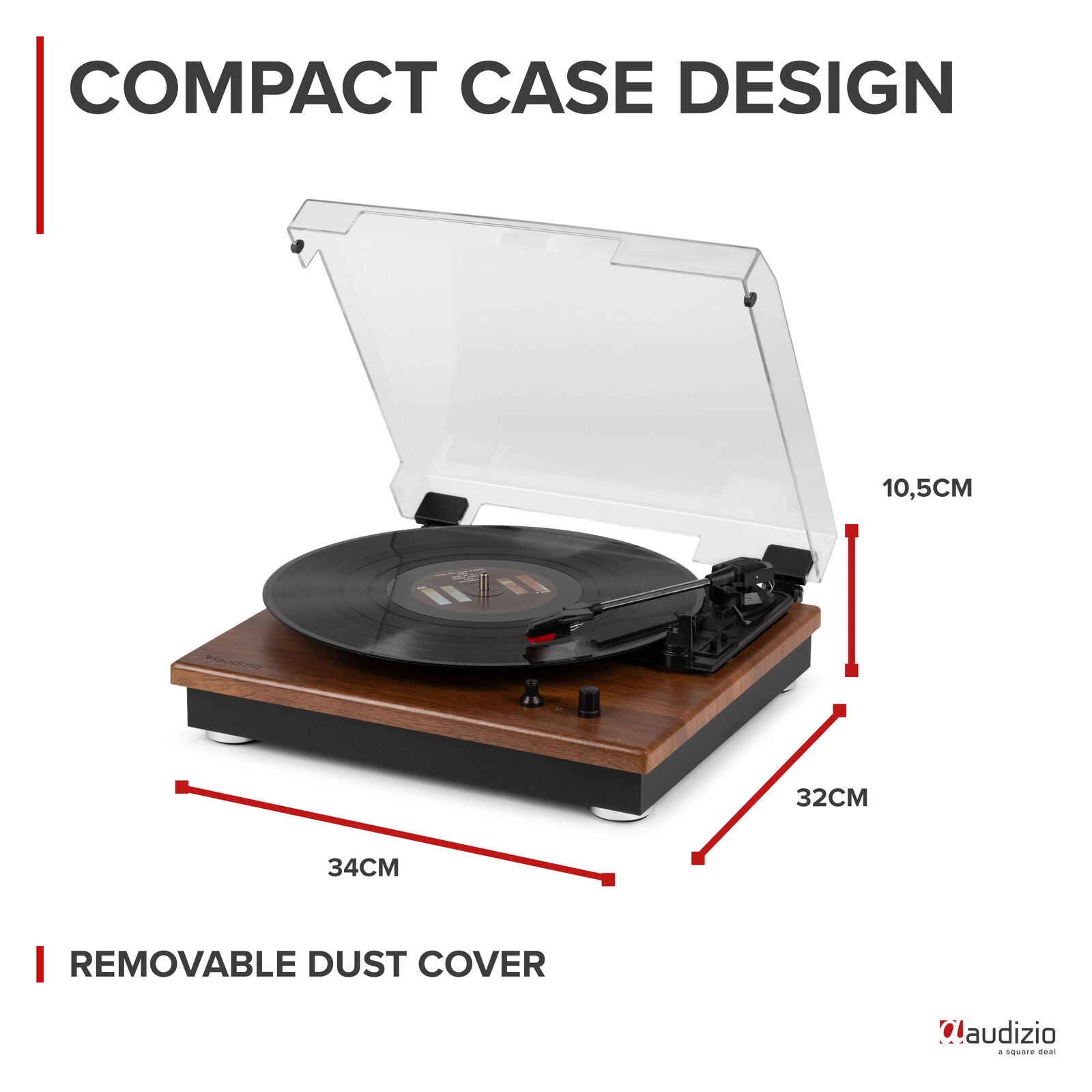 Gramofon Audizio RP112L z wejściem/wyjściem BT, ciemne drewno