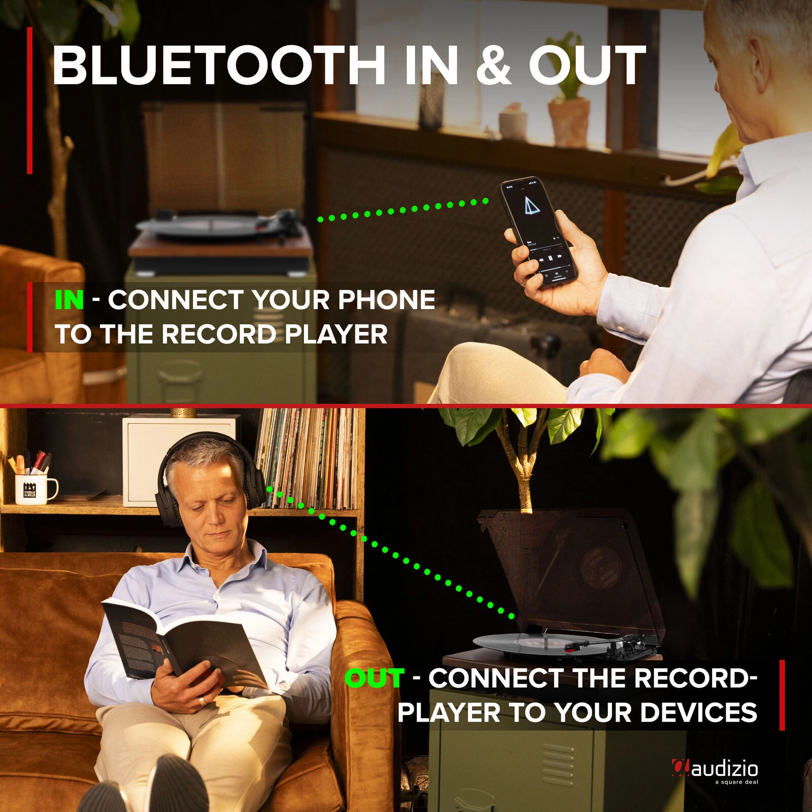 Audizio RP112L to gramofon z Bluetooth, dzięki któremu możesz oczywiście cieszyć się swoją kolekcją płyt winylowych, ale możesz także przesyłać strumieniowo do i z gramofonu. Niezależnie od tego, czy chcesz przesyłać strumieniowo dźwięk swojego ulubionego winylu do głośnika, czy przesyłać strumieniowo muzykę z ulubionego serwisu strumieniowego do RP112L, oba są możliwe! Ten odtwarzacz płyt z wbudowanymi głośnikami natychmiast odtwarza muzykę. Odtwarzacz posiada także 3 prędkości, dzięki czemu nadaje się do każdego rodzaju płyt. Funkcja automatycznego zatrzymania zapobiega niepotrzebnemu zużyciu igły i nagrywa, gdy jesteś zajęty czymś innym.