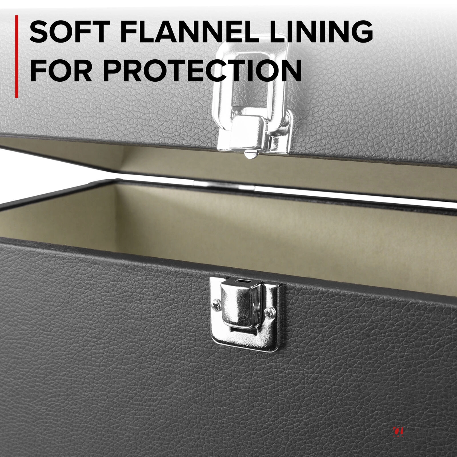 Walizka RC32 pomieści do 35 płyt, w zależności od grubości okładek. Jej wnętrze wykończone jest miękkim, flanelowym materiałem, który skutecznie chroni Twoje winyle przed niepotrzebnymi zarysowaniami. Dzięki solidnej konstrukcji i wysokiej jakości materiałom, Twoje płyty będą zawsze w bezpiecznym miejscu.