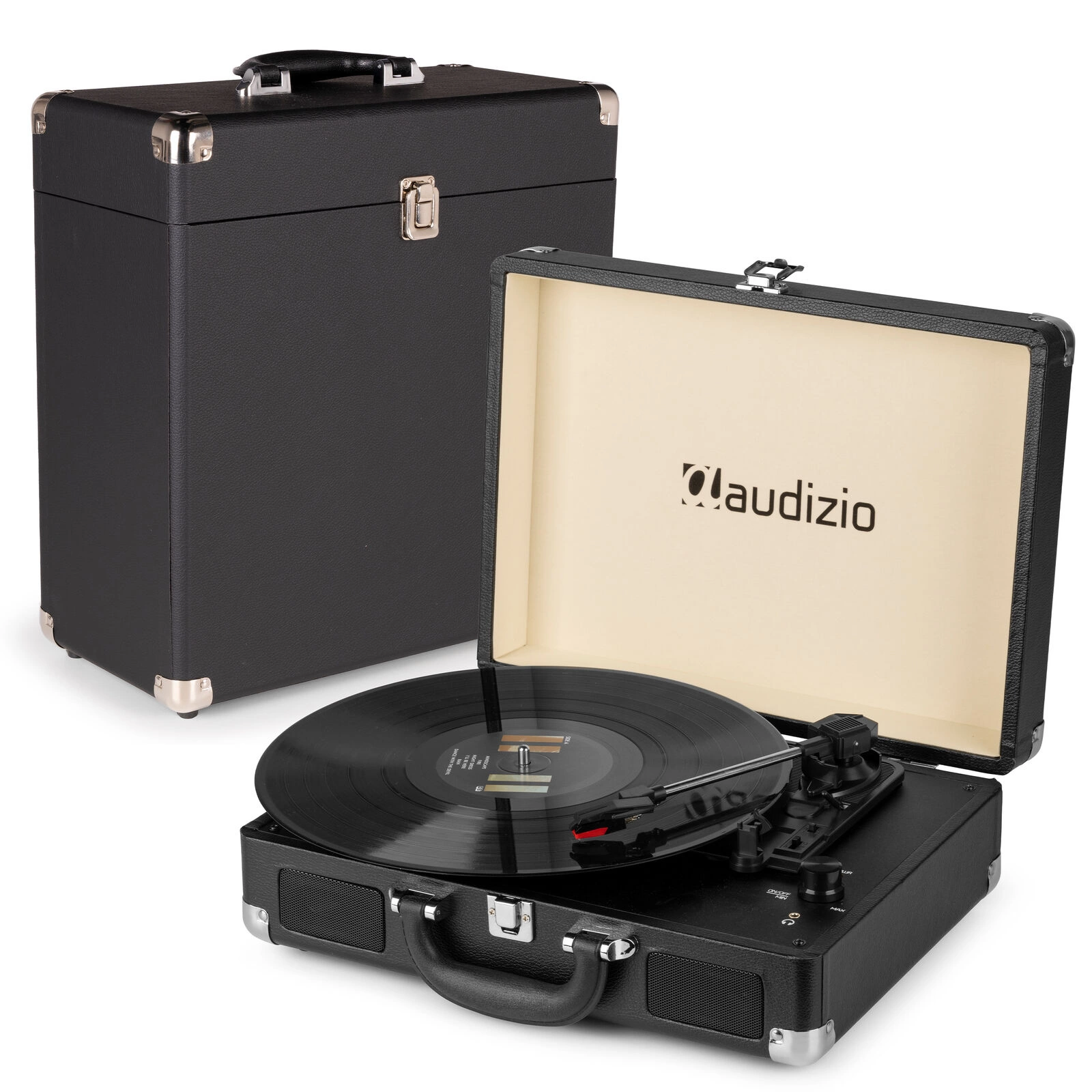 RC32 wyróżnia się eleganckim wyglądem, dzięki sztucznej skórze, która nadaje jej luksusowy charakter. Czarny kolor sprawia, że walizka jest nie tylko funkcjonalna, ale także stylowa, co czyni ją idealnym dodatkiem do każdego wnętrza. Doskonale komponuje się z gramofonami Audizio, podkreślając ich design.