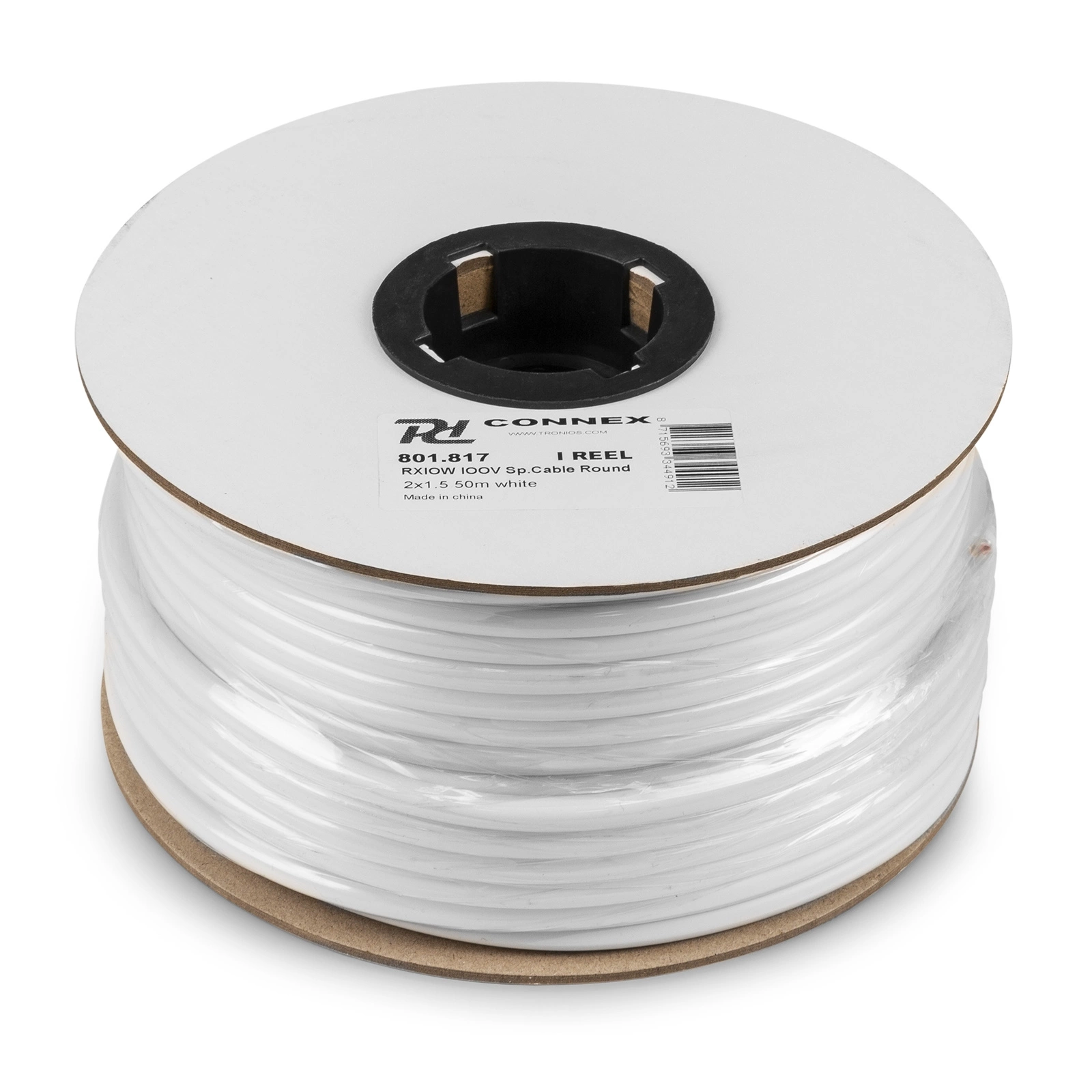 Okrągły, 2-żyłowy kabel głośnikowy z mocną, okrągłą osłoną zewnętrzną. Wskazanie polaryzacji poprzez kolorową izolację żył wewnętrznych.