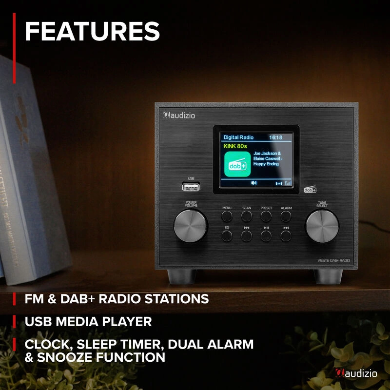 Łączy w sobie mocny dźwięk, wszechstronną łączność i wygodne funkcje, aby zwiększyć przyjemność ze słuchania. Aby zapewnić dodatkowe wzmocnienie basów, w dolnej części wbudowany został dodatkowy subwoofer. Vieste obsługuje tradycyjny odbiór radia FM i radia DAB+, dzięki czemu możesz cieszyć się wszystkimi ulubionymi stacjami, zapisując je w 40 dostępnych pamięciach. Możesz także odtwarzać swoje ulubione utwory MP3, podłącz urządzenie za pomocą wejścia AUX lub sparuj przez BT, aby odtwarzać muzykę ze smartfonu, tabletu lub laptopa.