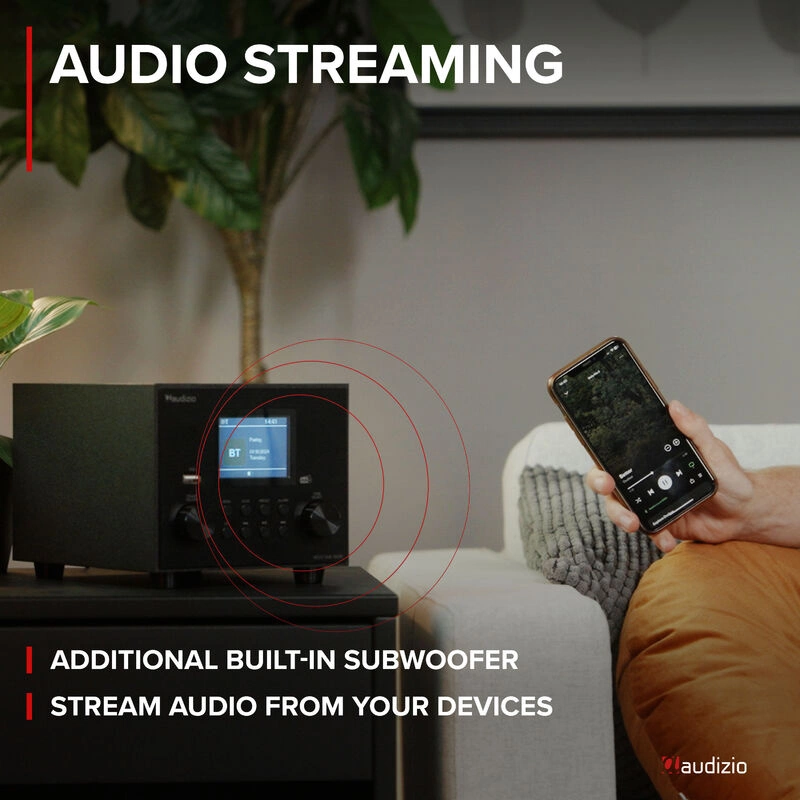 Radio DAB+ tuner FM z subwooferem czarne do kuchni salonu biura Audizio