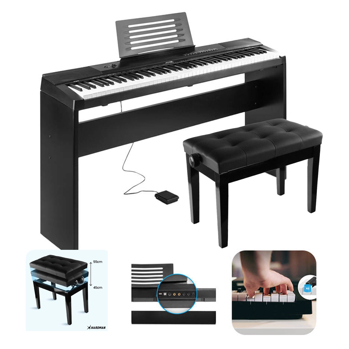 Zestaw: Pianino CYFROWE ze statywem 88 klawiszy SUSTAIN+ regulowana ławka