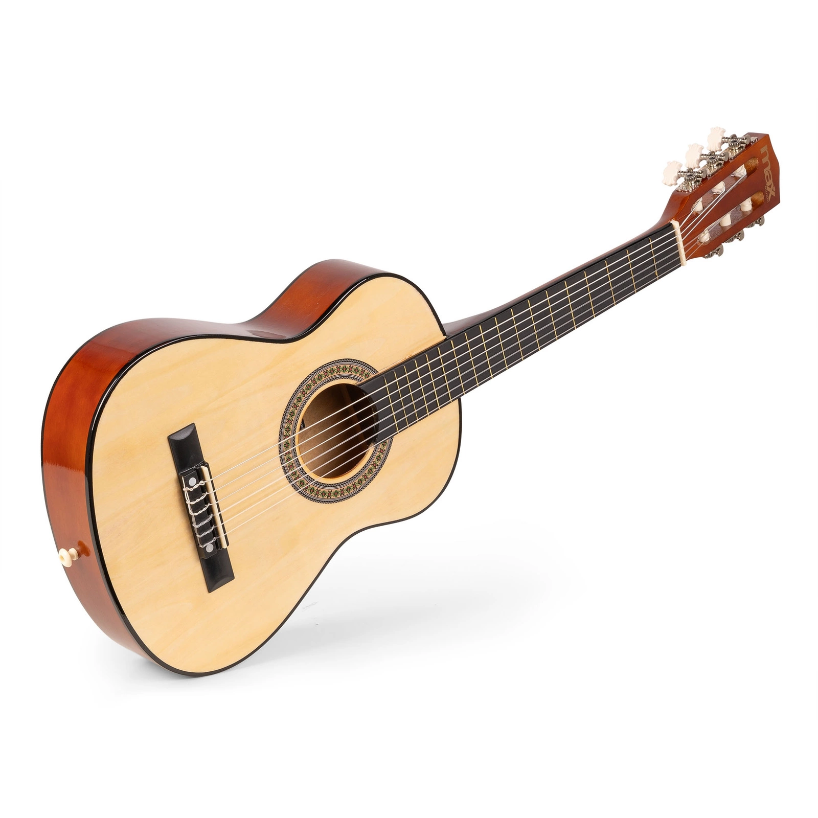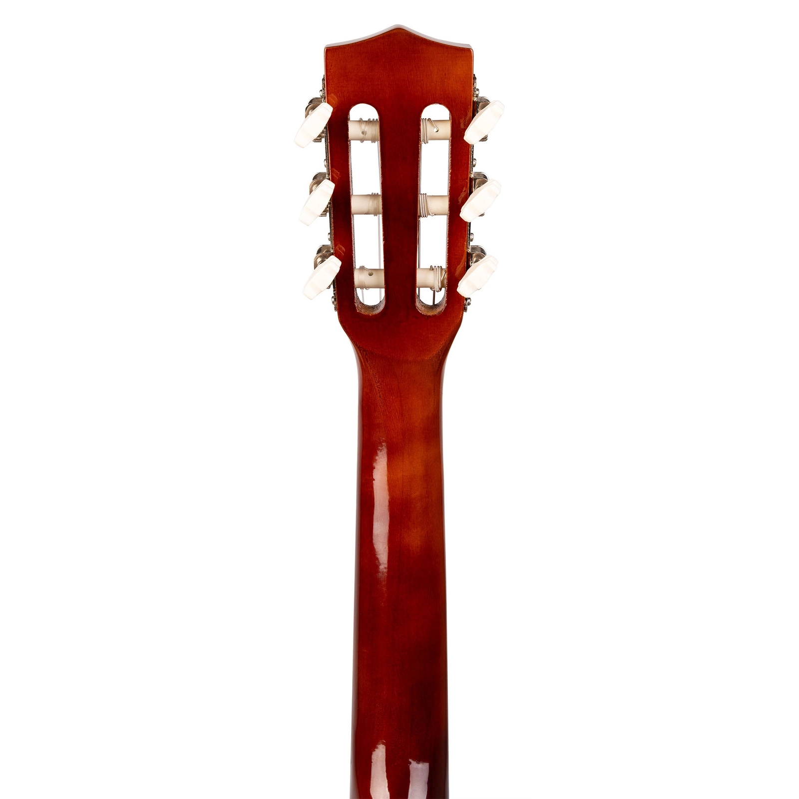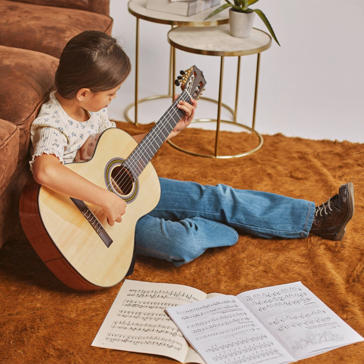 Ta klasyczna gitara posiada 6 nylonowych strun i waży zaledwie 1,25 kg, co sprawia, że jest idealna dla najmłodszych gitarzystów. W zestawie znajdują się także przydatne akcesoria, takie jak: