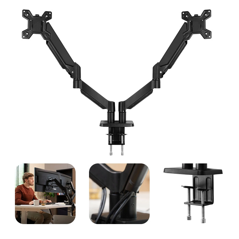 Podwójne ramię do monitora na sprężynie gazowej uchwyt na 2 monitory 17"32"