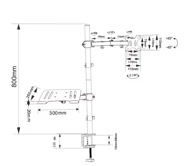 Pojedyncze ramię do monitora 13"-32"uchwyt na monitor z podstawką na laptop