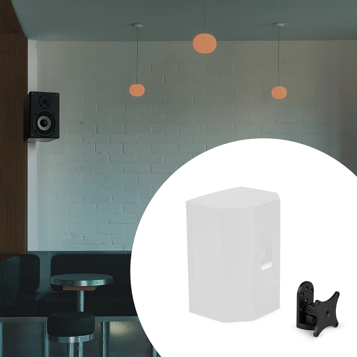 Uchwyt ścienny PDWSB został zaprojektowany do bezpiecznego montażu i precyzyjnego ustawienia głośników PDW na powierzchniach konstrukcyjnych, takich jak ściany, spody balkonów czy nawisów.