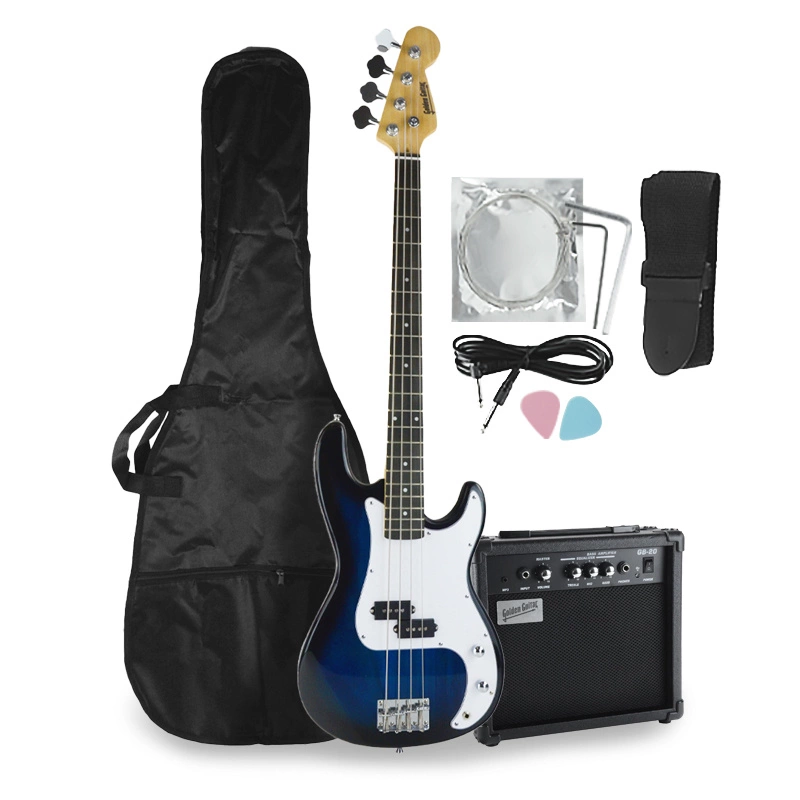 Gitara basowa elektryczna wzmacniacz basowy akcesoria Golden Guitar niebiesko-czarna