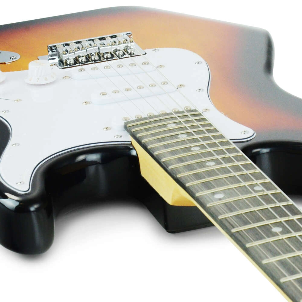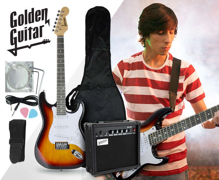 Gitara elektryczna o klasycznym kształcie Stratocaster, wyróżnia się wysokiej jakości wykonaniem, uniwersalnym brzmieniem oraz niebanalnym wykończeniem sunburst na wysoki połysk. Ten kompletny zestaw gitarowy stworzony jest z myślą o osobach rozpoczynających swoją przygodę z muzyką, jak i bardziej zaawansowanych graczach, którzy szukają solidnego instrumentu do codziennych ćwiczeń.