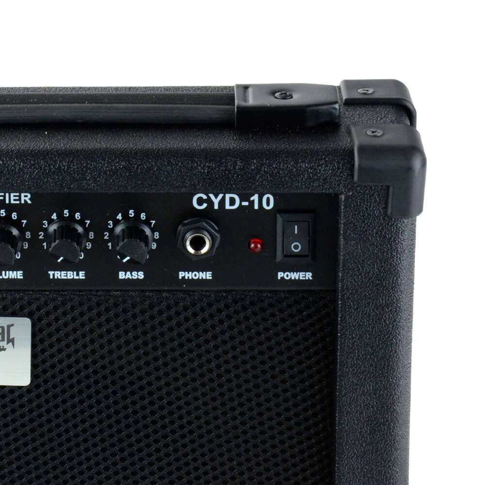 Model CYD-10 oferuje 10W mocy, wystarczającą do ćwiczeń w domu, na próbach lub niewielkich występach. Pokrętła DRIVE, VOLUME, TREBLE i BASS pozwalają precyzyjnie dostosować brzmienie do indywidualnych preferencji muzycznych.