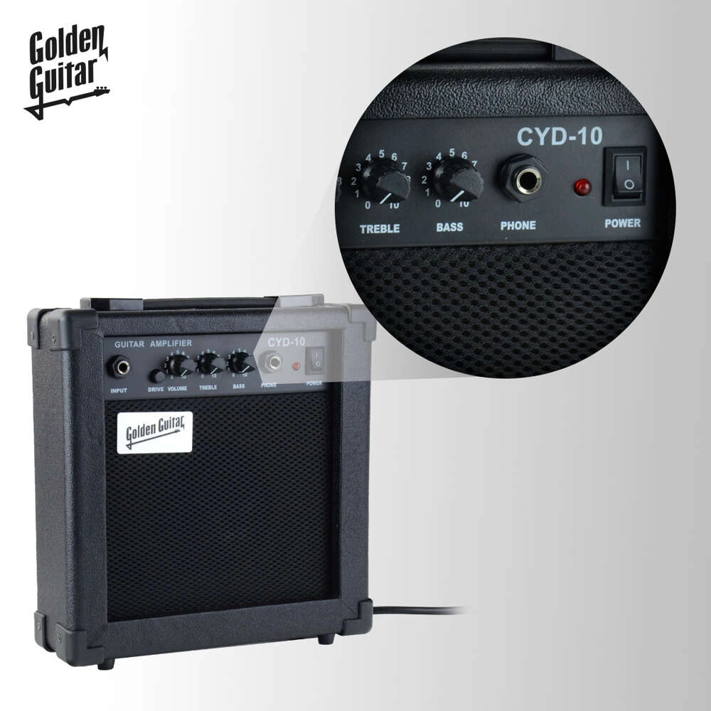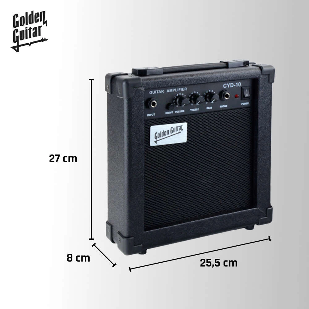 Golden Guitar CYD-10 to niezawodny, lekki i funkcjonalny wzmacniacz gitarowy, idealny zarówno dla początkujących, jak i bardziej zaawansowanych muzyków poszukujących mobilnego sprzętu o dobrym brzmieniu.
