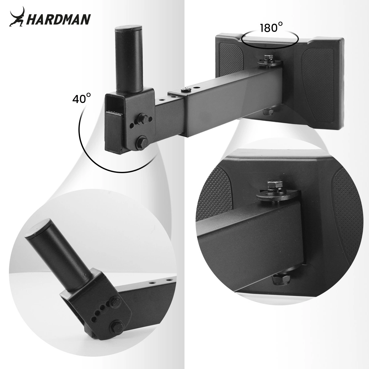 Regulacja kąta nachylenia tophat do 40° oraz możliwość obrotu całego ramienia w poziomie o 180° pozwala na optymalne dostosowanie pozycji głośników do indywidualnych potrzeb. To zapewnia równomierne rozprowadzenie dźwięku w całym pomieszczeniu, przestrzeni.