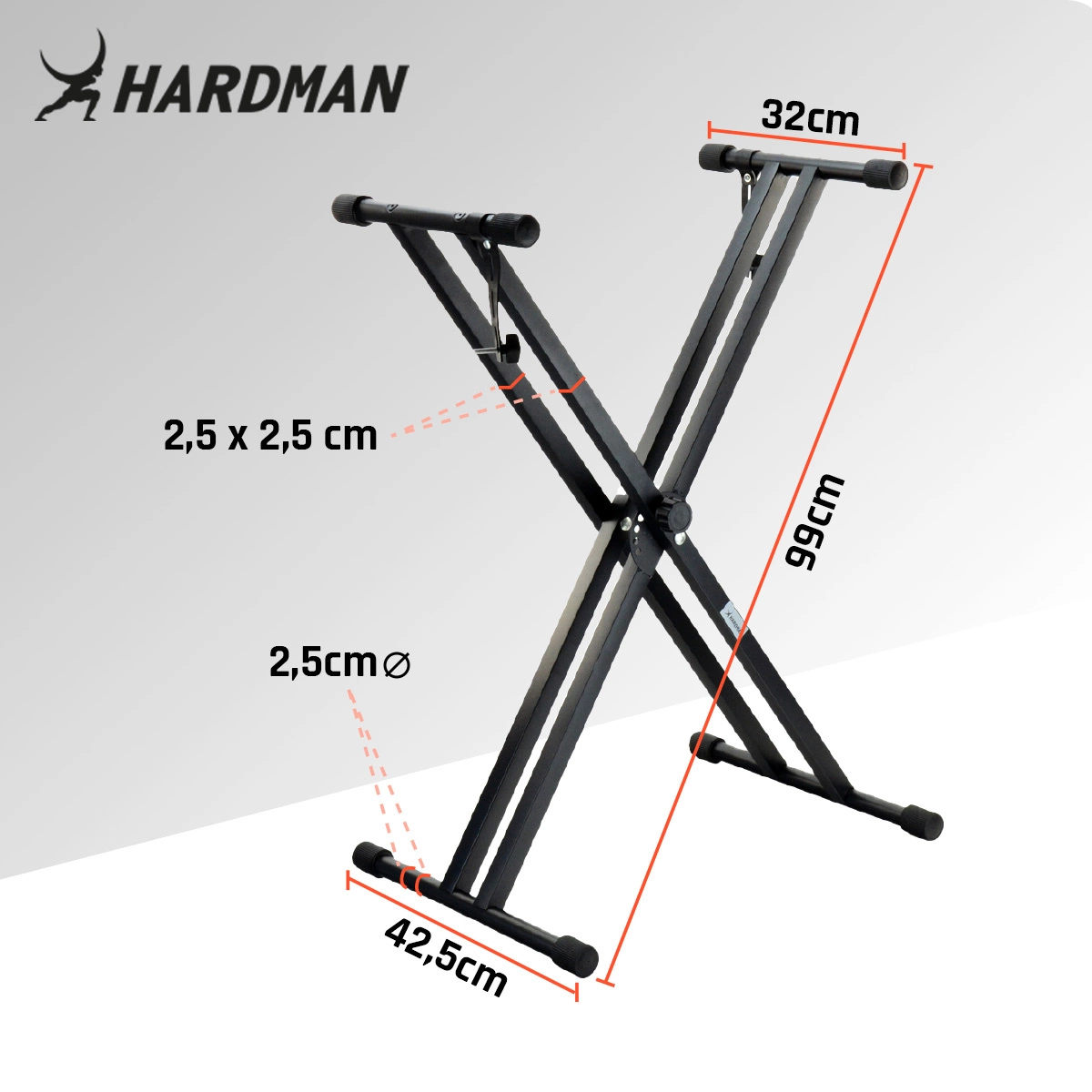 Hardman to solidny, a zarazem lekki i wygodny w transporcie statyw klawiszowy o podwójnej konstrukcji XX. Dzięki łatwej regulacji wysokości jest doskonałym wyborem dla muzyków grających na pianinach cyfrowych, keyboardach i syntezatorach. Sprawdza się zarówno na scenie koncertowej, w studiu nagraniowym, jak i podczas codziennych ćwiczeń w domu.