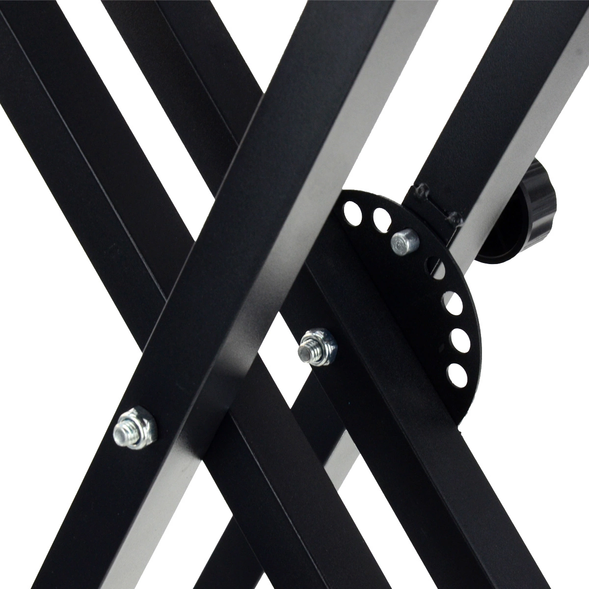 Statyw Hardman został wykonany z odpornych na odkształcenia profili i rur, co zapewnia jego odporność na odkształcenia i dużą stabilność. Podwójna rama pozwala na bezpieczne użytkowanie nawet przy większych obciążeniach, spokojnie może utrzymać instrumenty o maksymalnym obciążeniu do 20kg. To gwarancja stabilności nawet przy cięższych keyboardach lub syntezatorach.