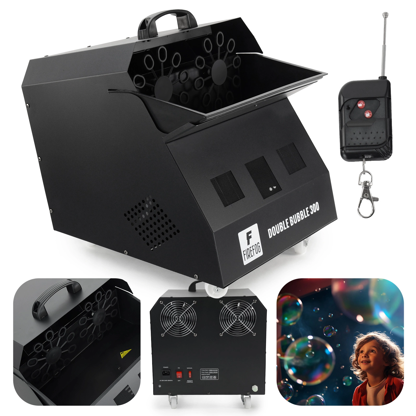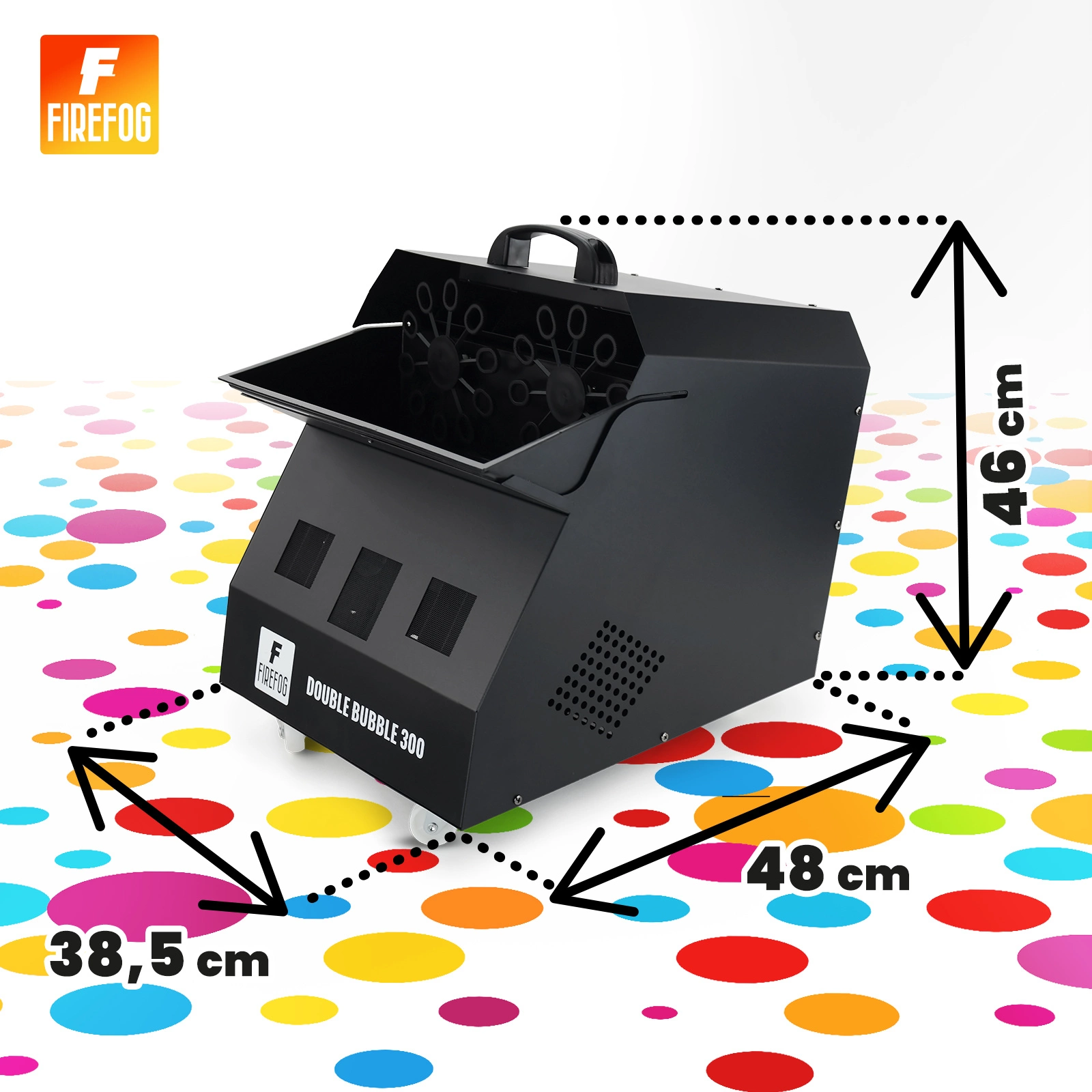 Podwójna wytwornica baniek Firefog Double Bubble 300 to profesjonalne urządzenie, które sprawi, że każda impreza nabierze magicznego charakteru. Dzięki dużej mocy 300W oraz zaawansowanemu systemowi podwójnych wirników, maszyna generuje ogromną ilość kolorowych baniek mydlanych, które unoszą się na wysokość 6-10 metrów, tworząc spektakularny efekt wizualny.
