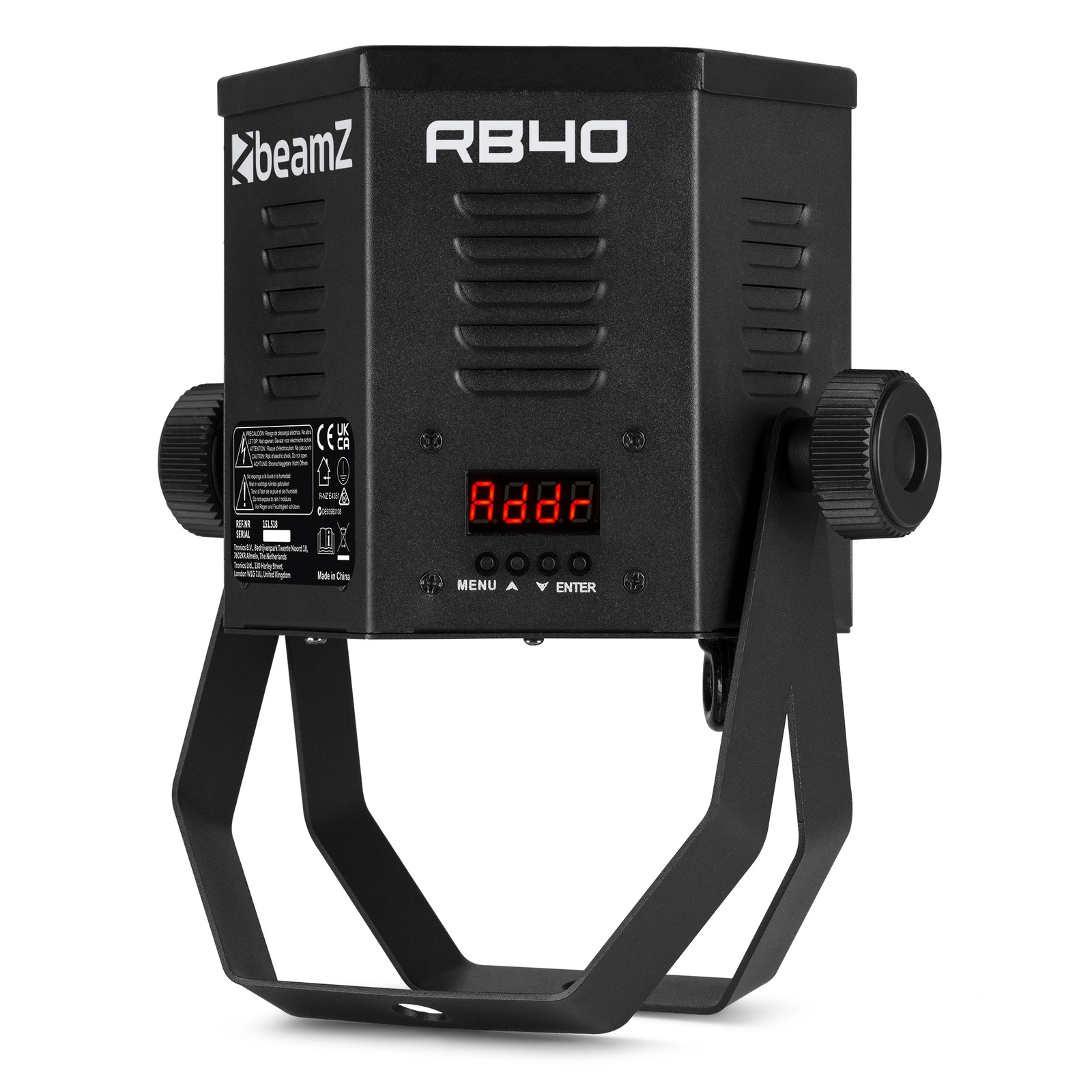 Dla pełnej kontroli nad reflektorem RB40 retro PAR marki BeamZ najlepiej skorzystać z DMX, obsługując 5, 6 lub 8 kanałów DMX. Do tego wymagany jest kontroler DMX lub sterownik oświetleniowy. Nie masz takiego urządzenia? Żaden problem! Reflektor można także ustawić w trybie sterowania dźwiękiem – światło reaguje na rytm muzyki. Dodatkowo dostępne są automatyczne programy, które zapewniają jeszcze większą wygodę użytkowania.