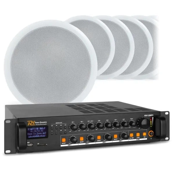 Zestaw: Głośnik sufitowy 8' 100V Power Dynamics CSPB8 + Przewód + Wzmacniacz PA