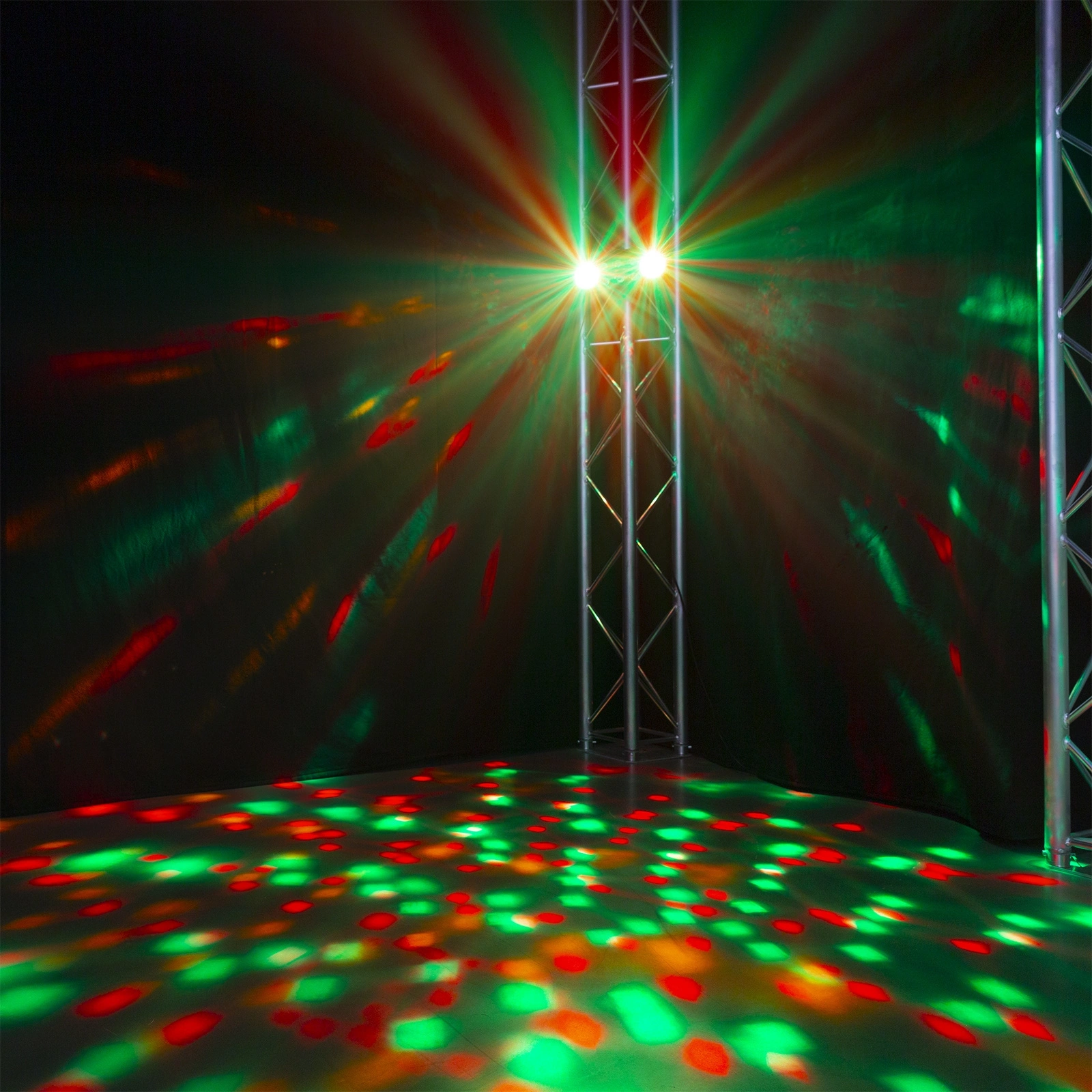 StrobeMoon łączy moc 2 wspaniałych efektów w jednym urządzeniu. Podwójny kwiat księżyca tworzy kolorowe efekty, które w połączeniu z białymi diodami LED o dużej mocy rozświetlają każdy parkiet taneczny. Wykończony silną funkcją stroboskopu, aby stworzyć dodatkową energię w pomieszczeniu. Ten efekt zapewnia małym klubom i mobilnym artystom wygodę korzystania z wielu efektów w jednym pokazie świetlnym bez konieczności transportu wielu urządzeń.