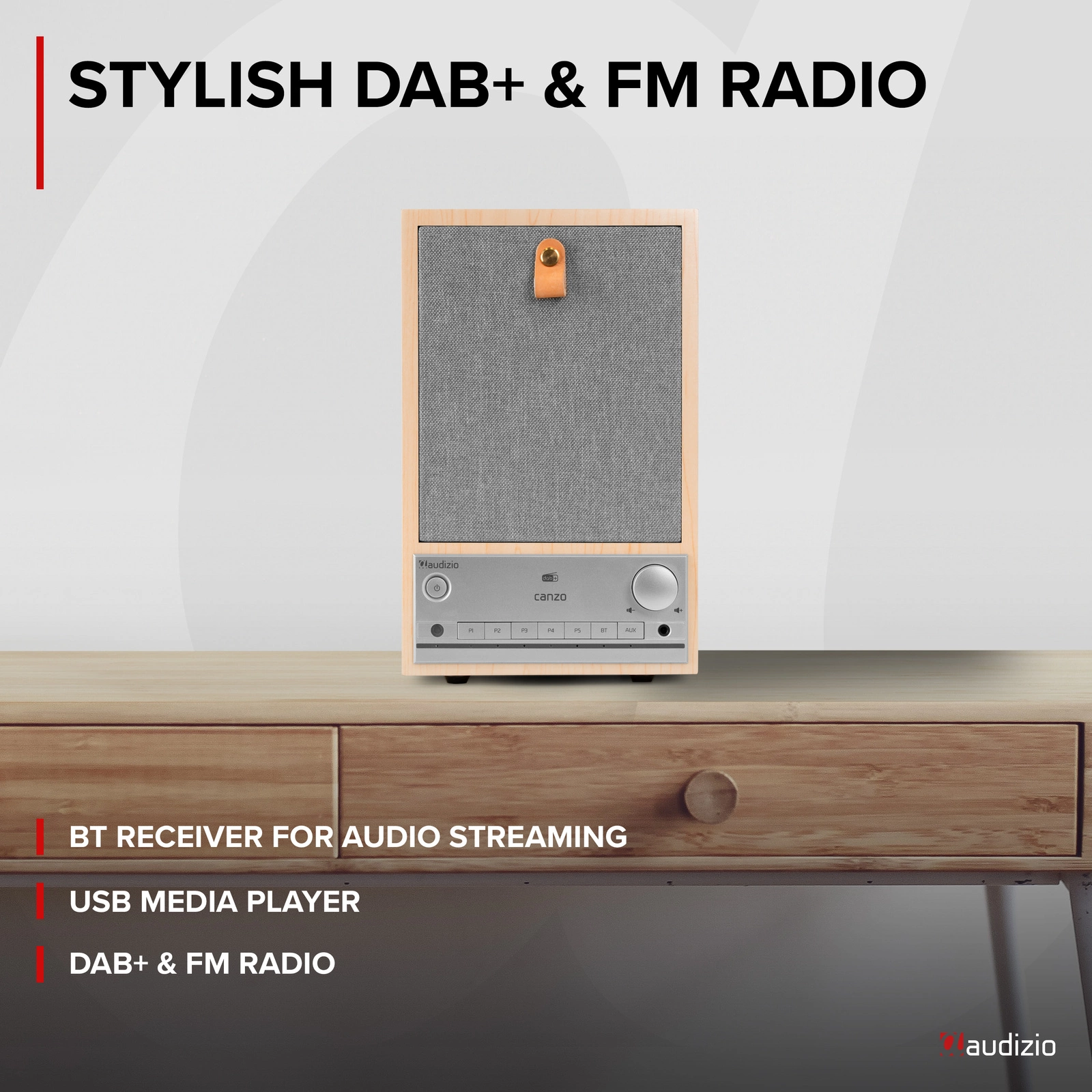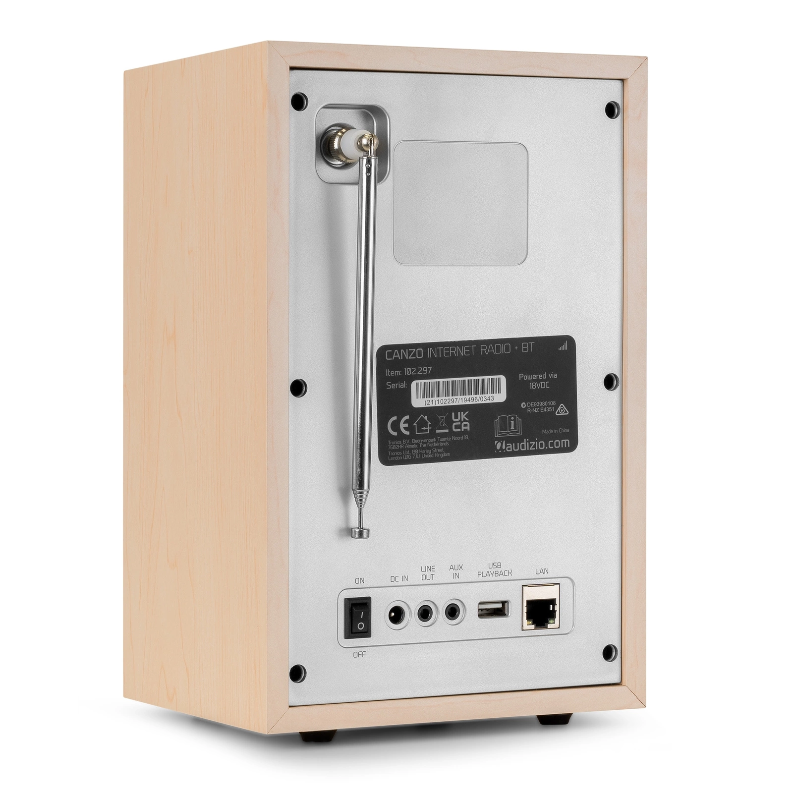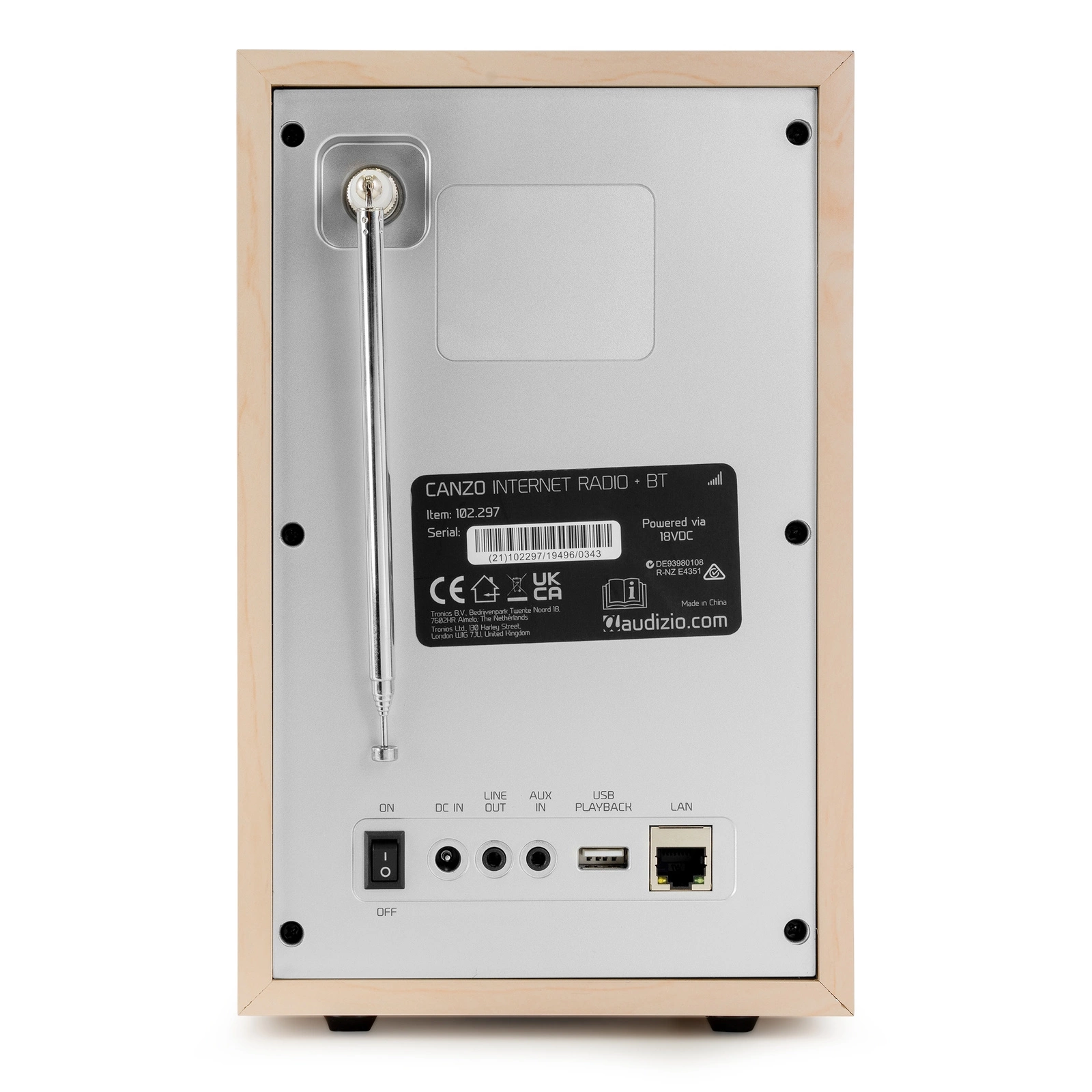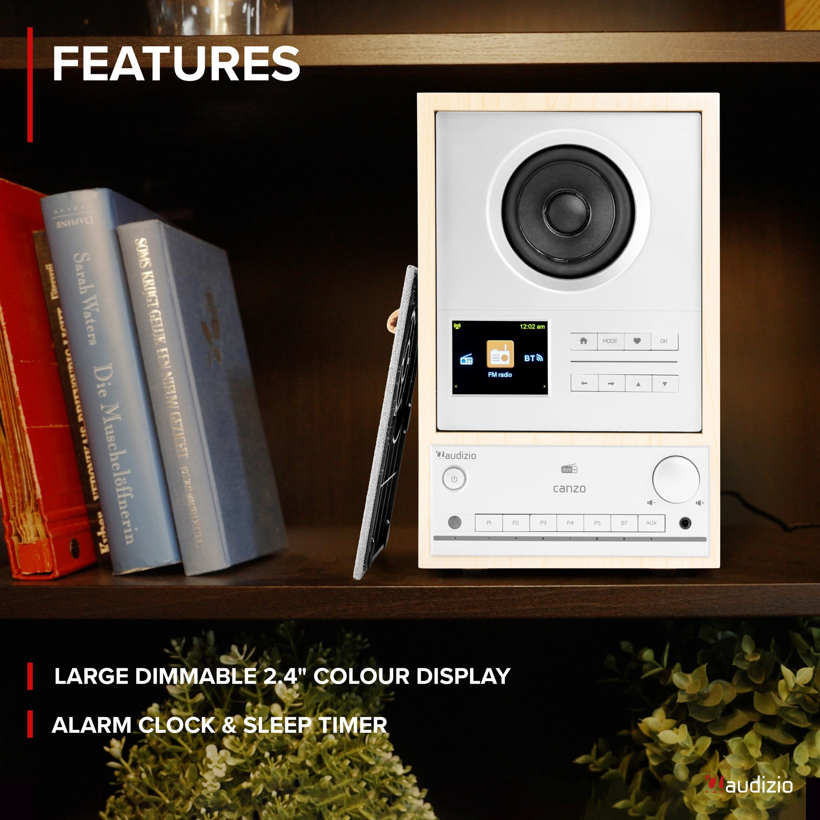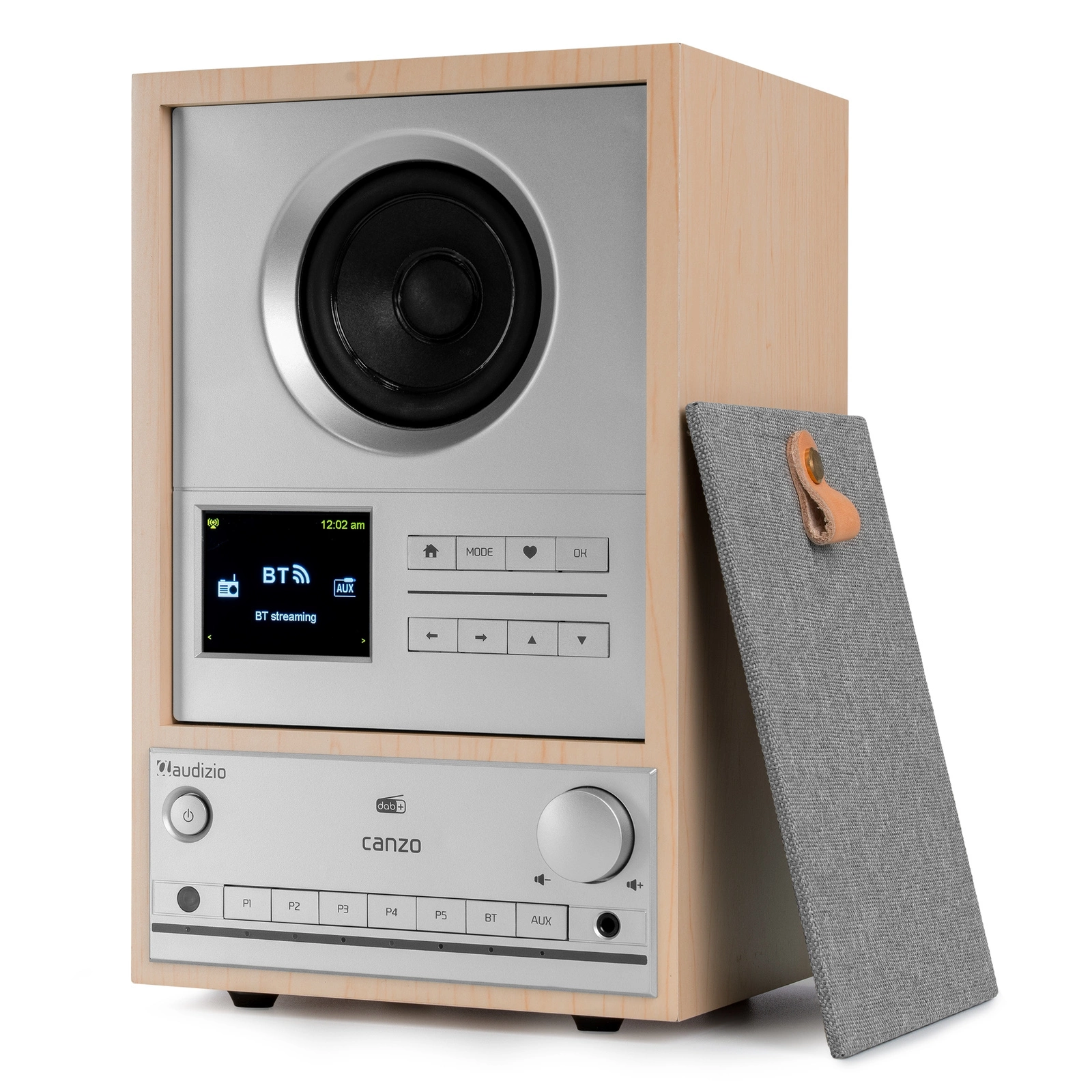 Audizio Canzo to najlepsze radio internetowe dla każdego, kto chce połączyć styl z funkcjonalnością. Stylowe wykończenie z odczepianym panelem przednim sprawia, że urządzenie przyciąga wzrok w każdym wnętrzu. Wybierz nowoczesny kolor jasnego drewna.
