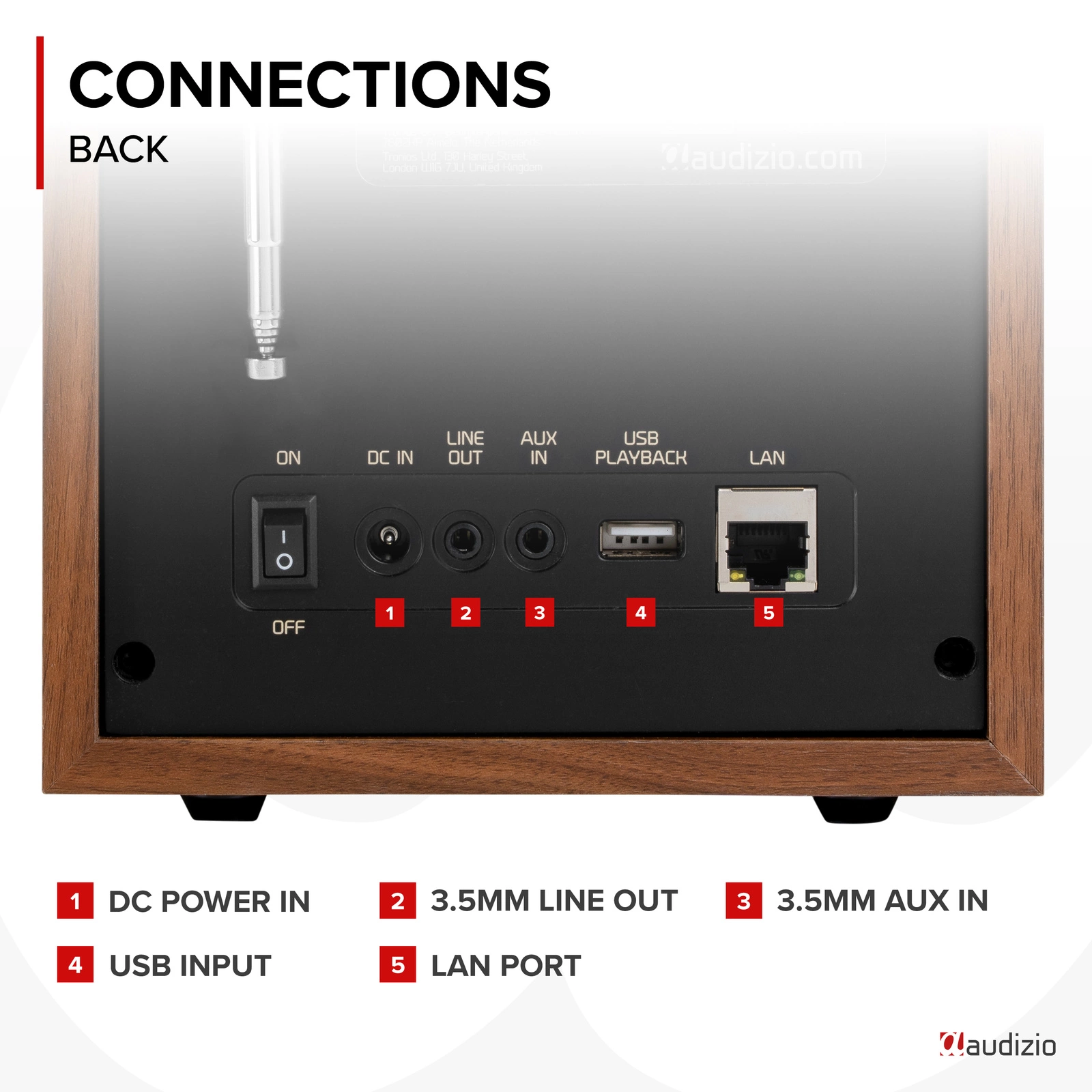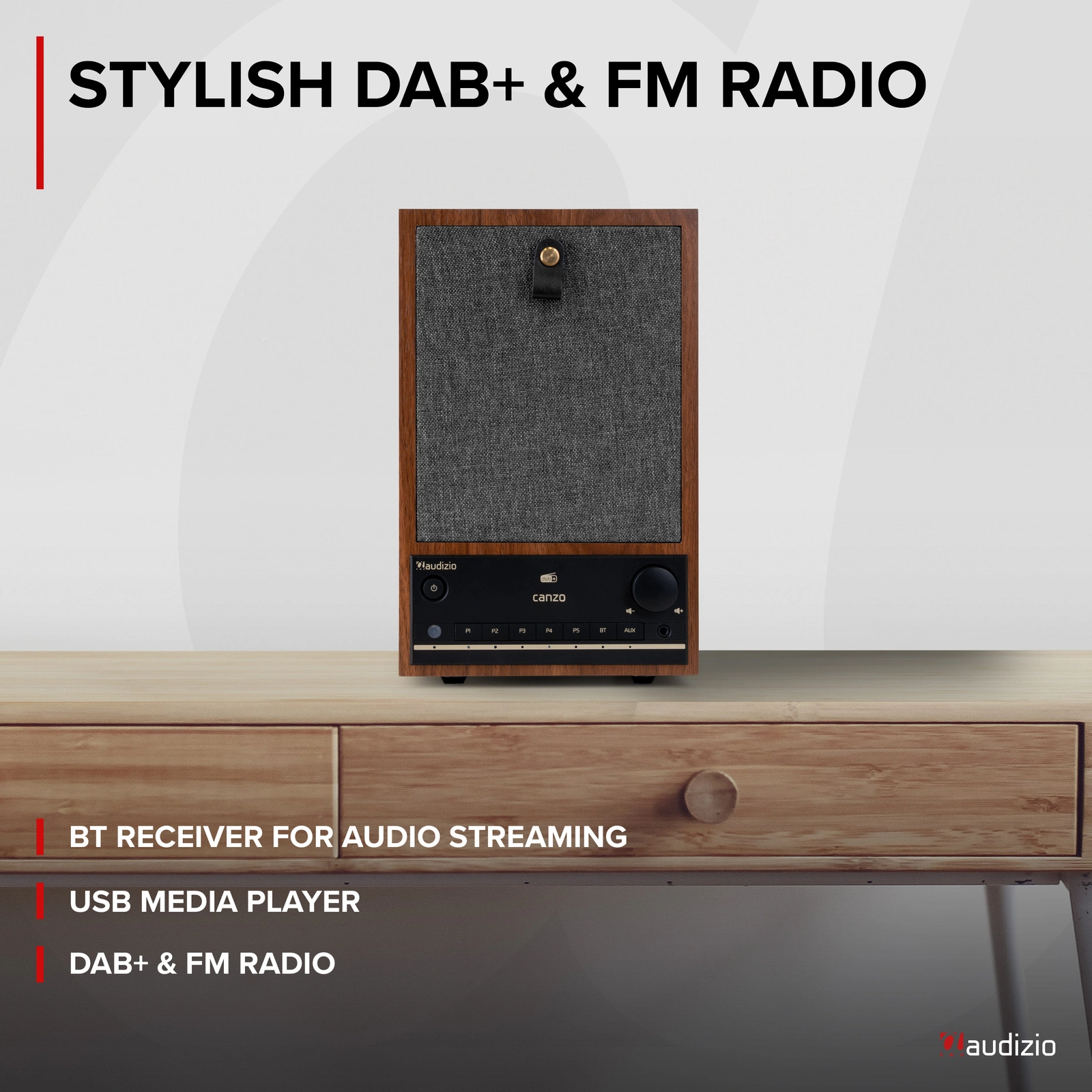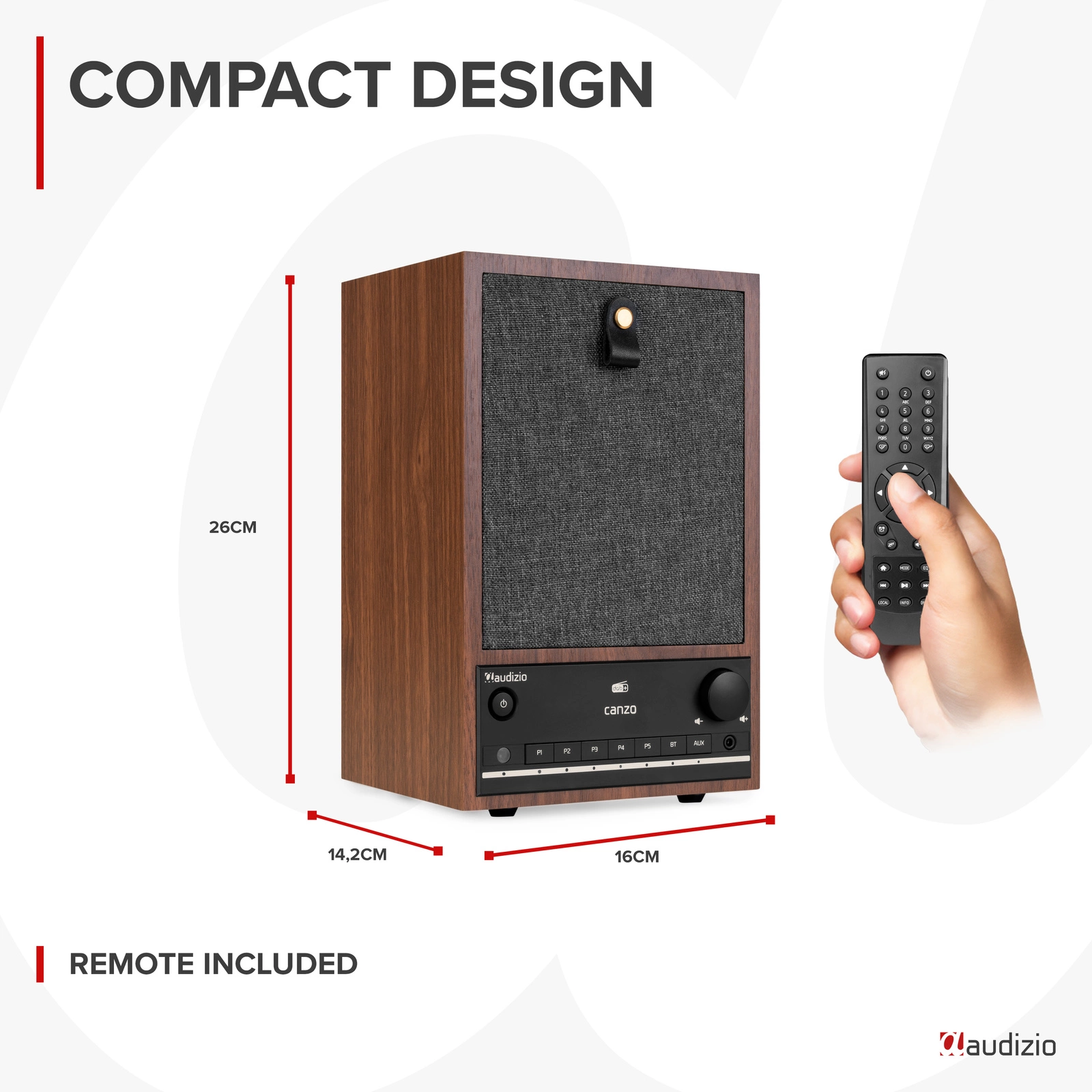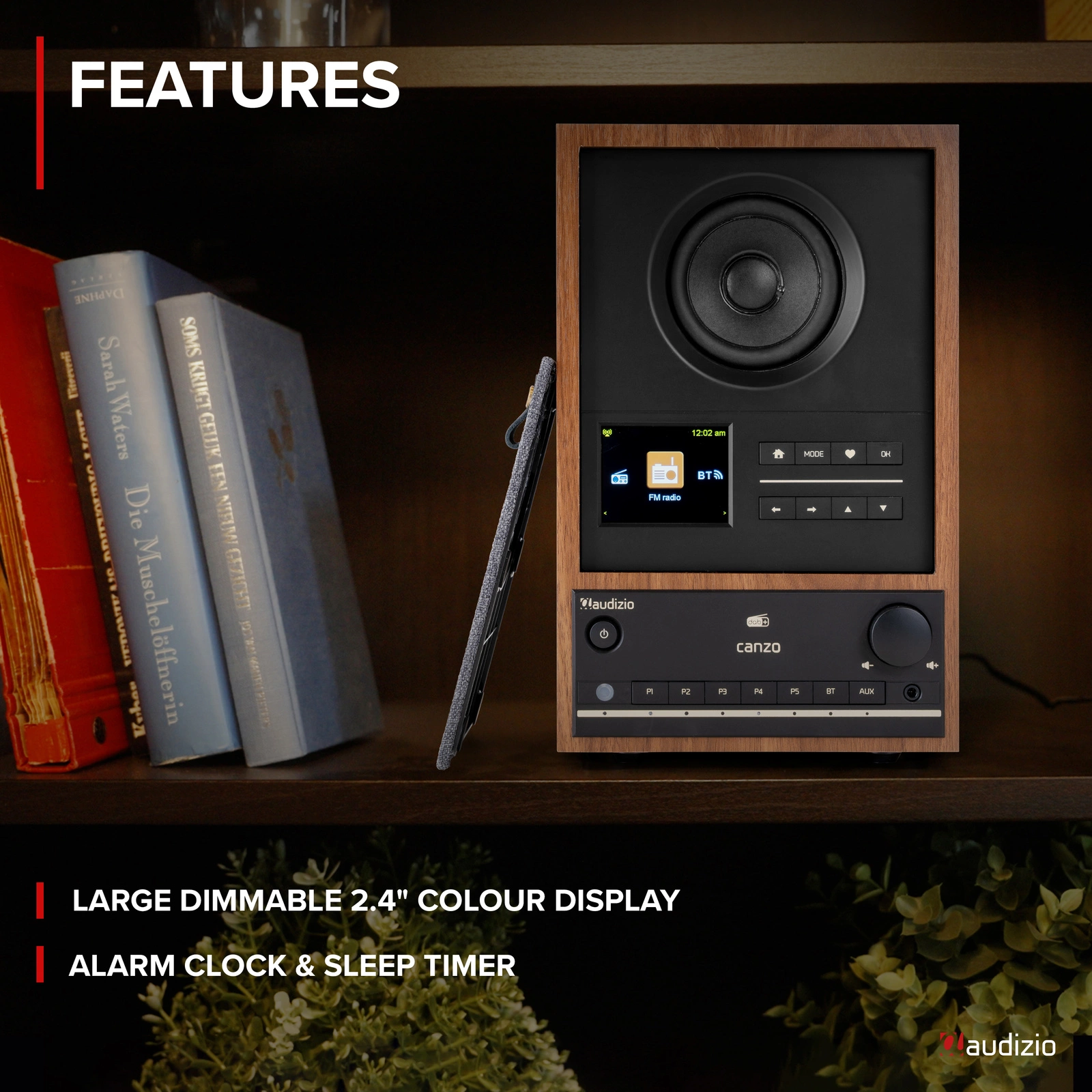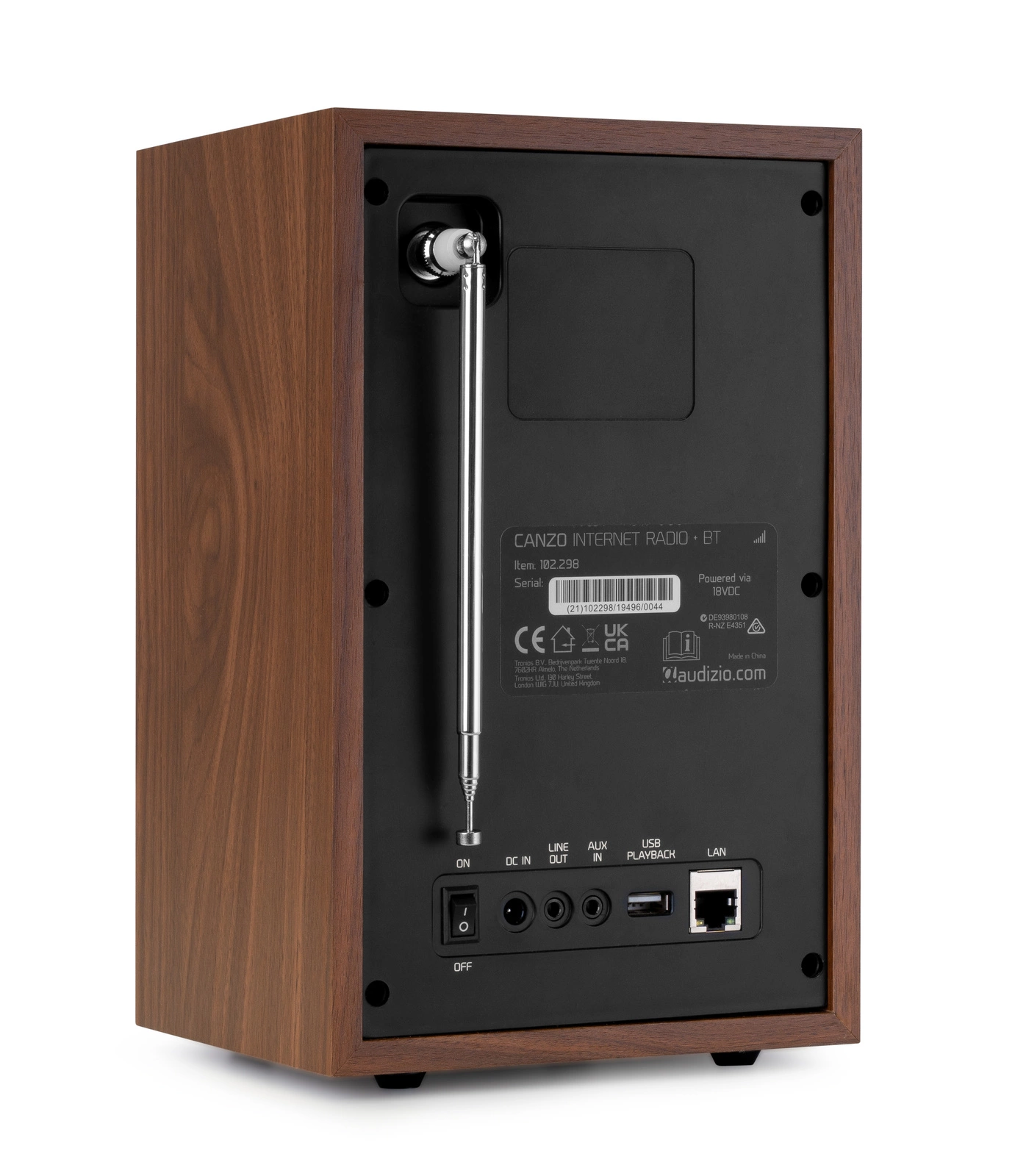 Audizio Canzo zapewnia doskonałe wrażenia dźwiękowe dzięki możliwości wyboru pomiędzy radiem internetowym, DAB+ oraz FM. Podłącz kabel sieciowy RJ45, aby uzyskać stabilny odbiór. Dzięki wysuwanej antenie uzyskasz również świetny sygnał w tradycyjnym radiu FM. Niezależnie od tego, czy wolisz lokalne rozgłośnie, czy stacje z innych krajów – Audizio Canzo daje Ci pełną swobodę wyboru.