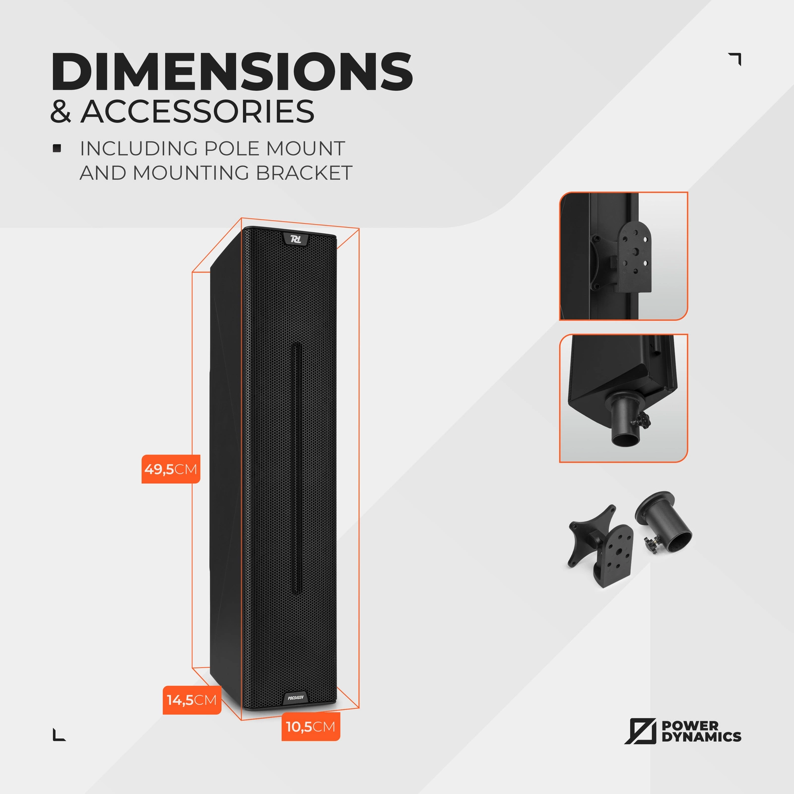 Głośnik kolumnowy 100V Power Dynamics czarny IP44 do kościoła restauracji