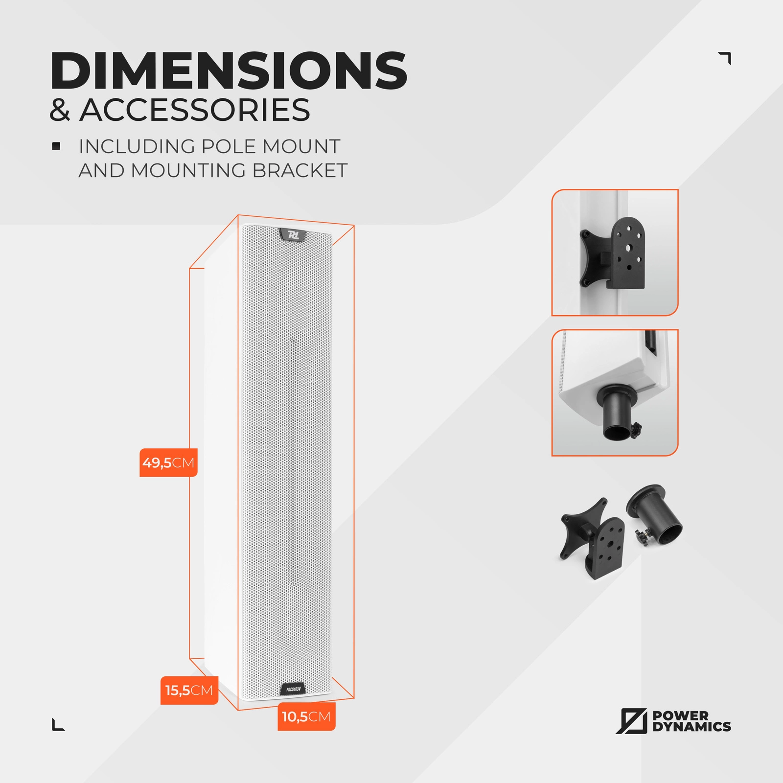 4x Głośniki kolumnowe 100V PDCS403V (białe)