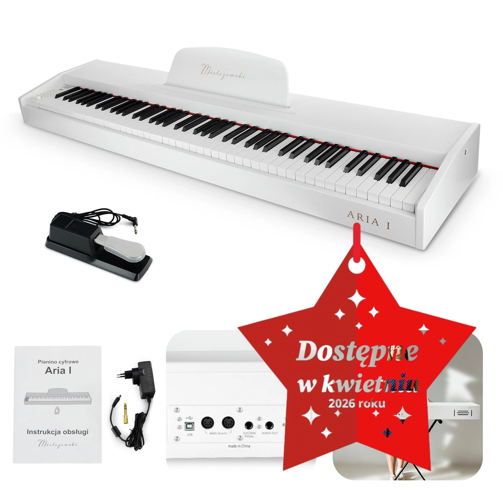 Pianino cyfrowe Aria I białe– 88 klawiszy Mielczewski