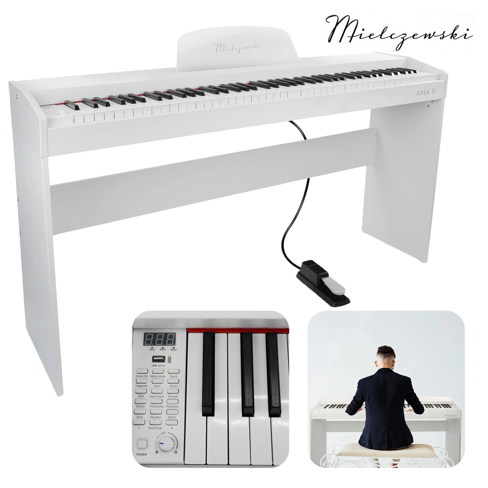 Pianino Aria II białe Mielczewski 88 klawiszy+ statyw pedał sustain/ zestaw