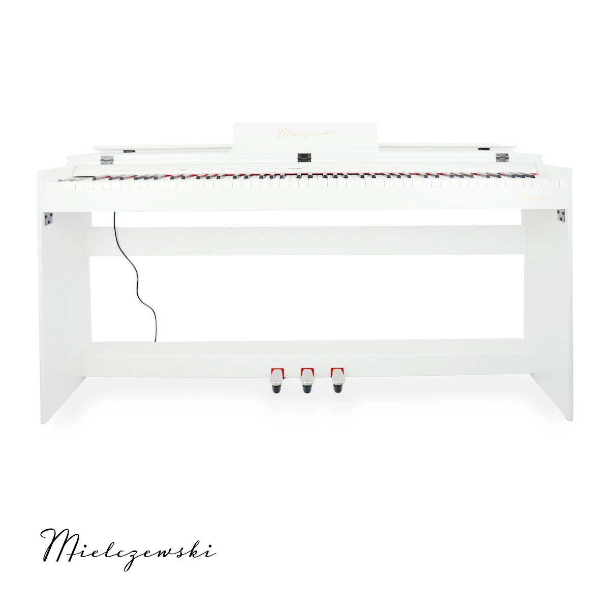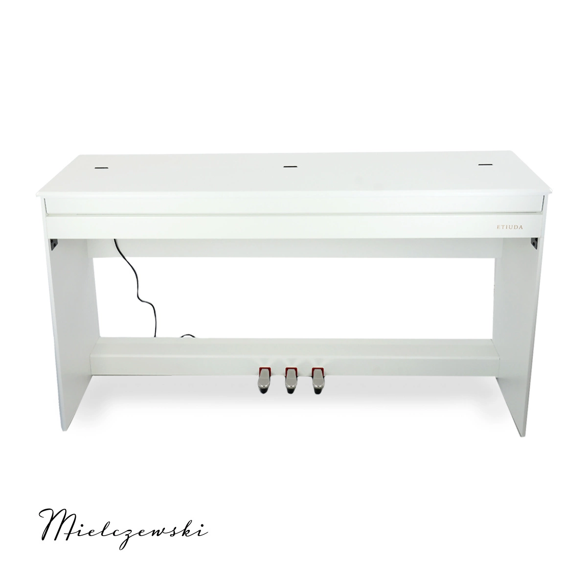 Model Etiuda Mielczewski – białe pianino z klasycznym statywem