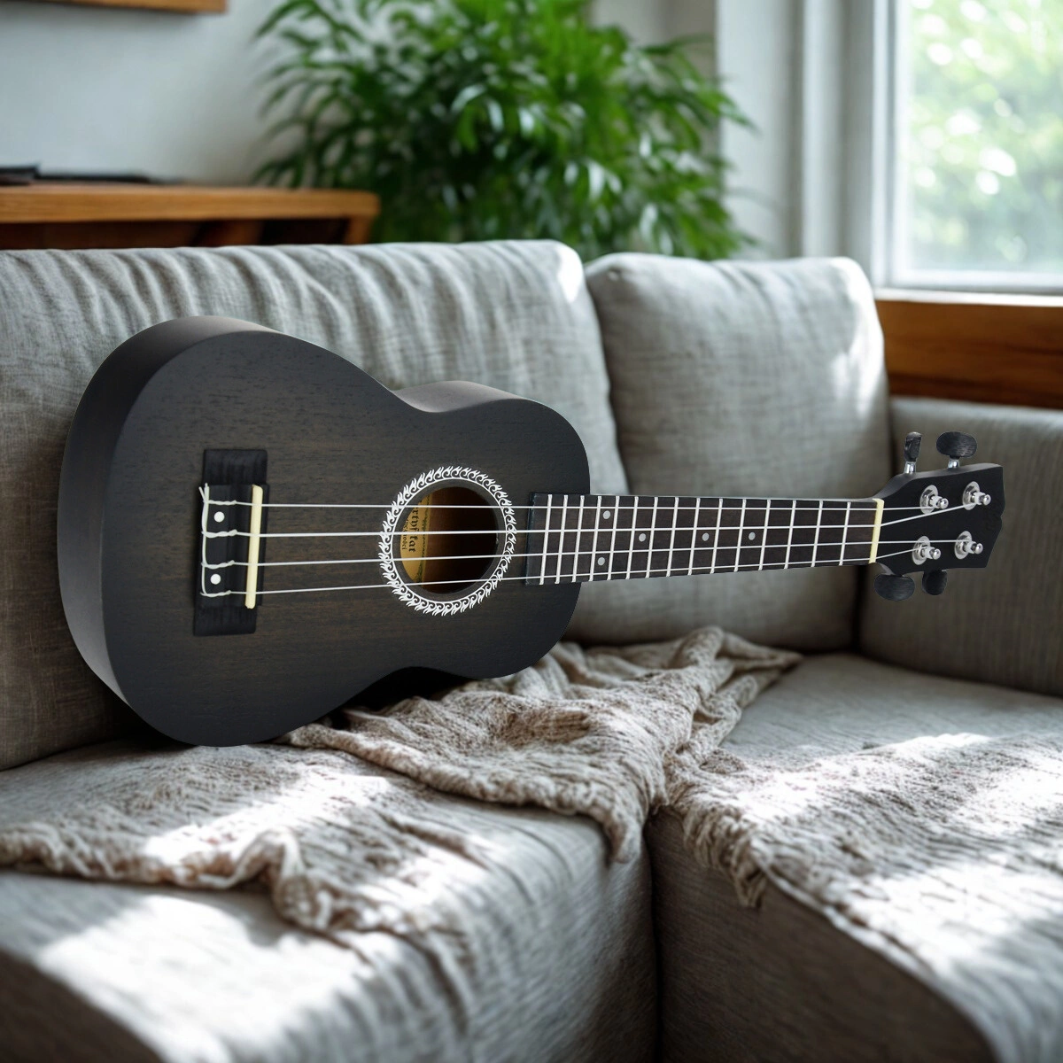 Ukulele sopranowe Golden Guitar (21") to idealny instrument dla każdego, kto chce rozpocząć muzyczną przygodę – zarówno dla dzieci, jak i dorosłych. Eleganckie, matowe wykończenie w kolorze czarnym oraz ręczne polerowanie sprawiają, że każde ukulele wygląda wyjątkowo i oryginalnie.