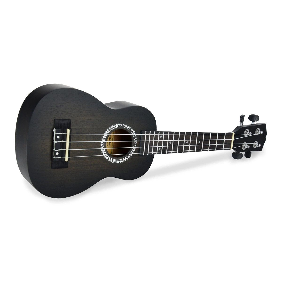 Zestaw ukulele sopranowe 21"czarne stroik tuner pokrowiec kapodaster kostki