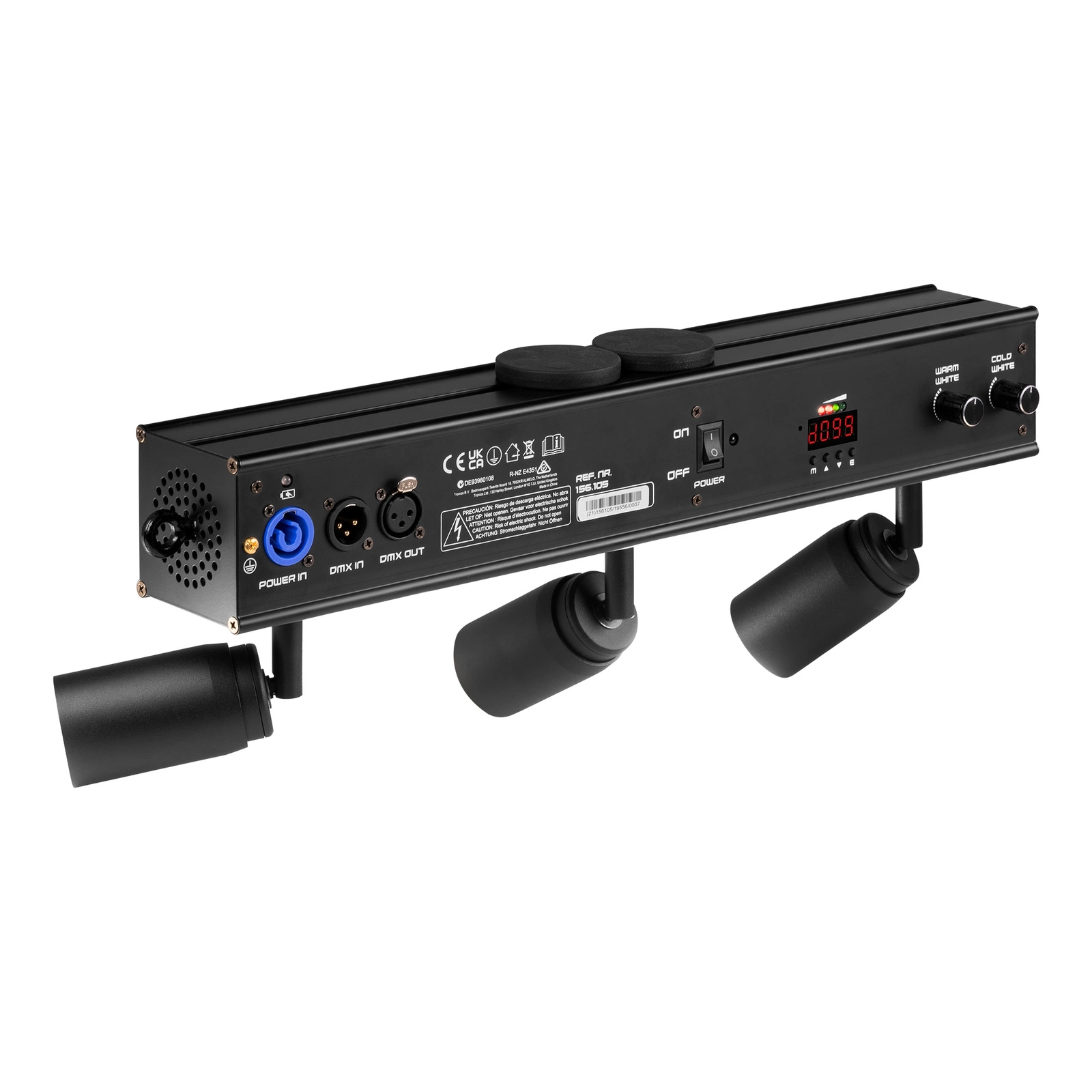 EZYBar3 to nowoczesny i stylowo zaprojektowany bezprzewodowy pasek LED, który na nowo definiuje sposób oświetlania bankietów, stoisk wystawienniczych, ogrodów oraz różnego rodzaju wydarzeń. Wyposażony we wbudowany akumulator, EZYBar posiada trzy wydajne źródła światła typu COB LED o mocy 10W każde, które mogą być mieszane w dowolnych odcieniach bieli — od ciepłej po zimną — w zakresie temperatur barwowych od 2700K do 6900K.