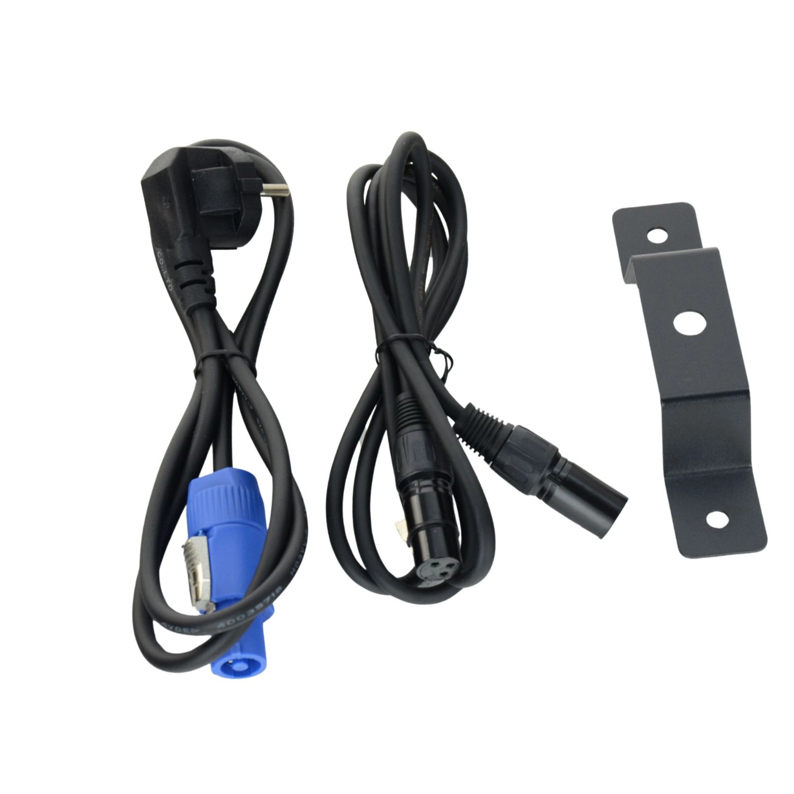 - W zestawie: kabel powercon, kabel DMX, uchwyt montażowy