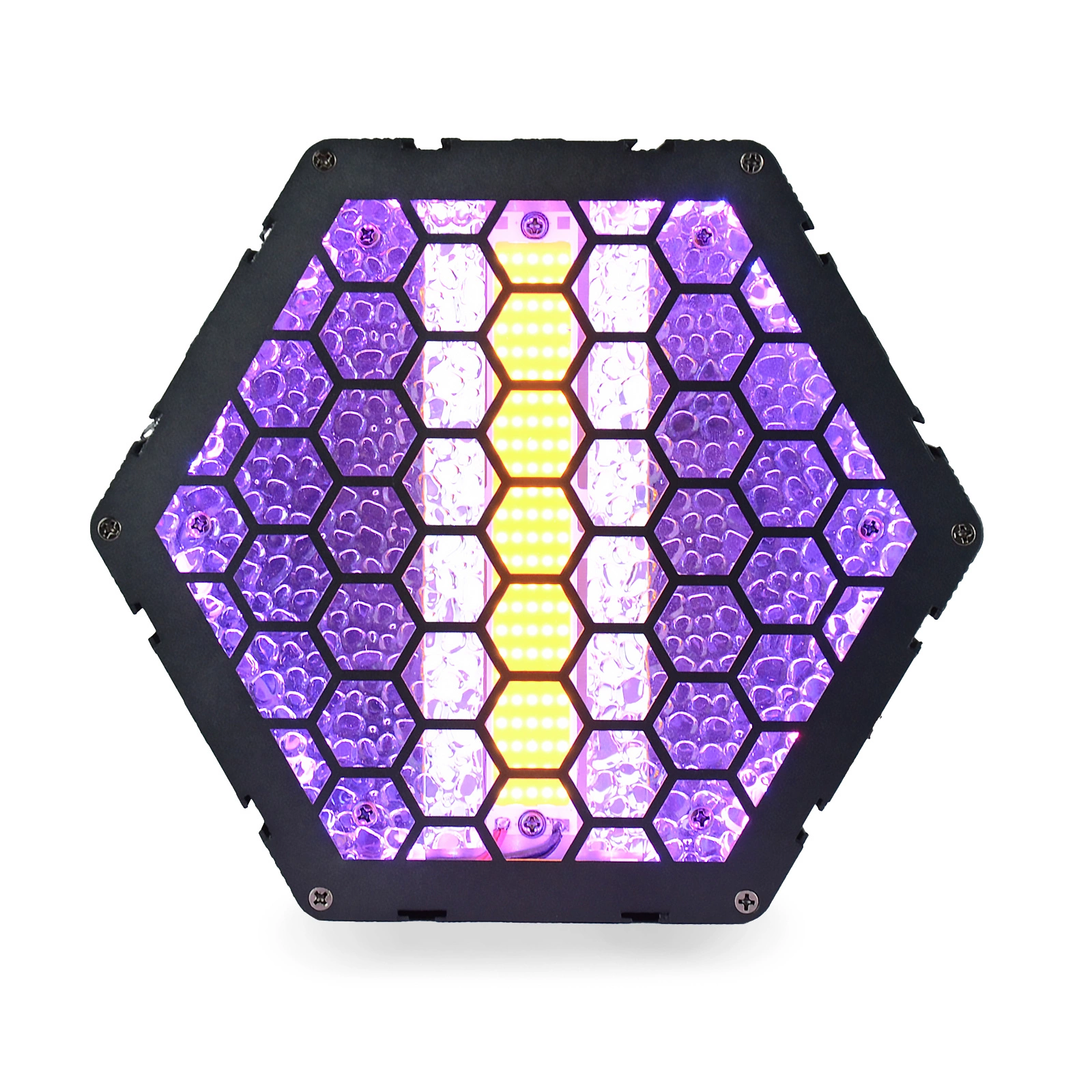Reflektor LED Hexagon Pro Lucendi to zaawansowane technologicznie źródło światła stworzone z myślą o profesjonalnych zastosowaniach scenicznych, koncertowych, klubowych oraz eventowych. Wyposażony w mocną diodę COB LED 100W ciepłobiała oraz aż 72 diody RGB 3w1 SMD5050, zapewnia niezwykle dynamiczne efekty świetlne i pełną kontrolę kolorystyki.